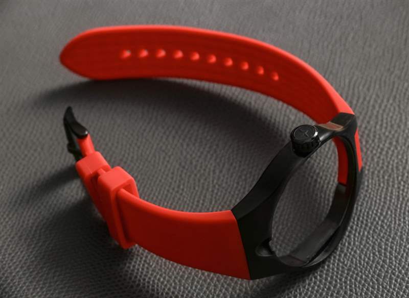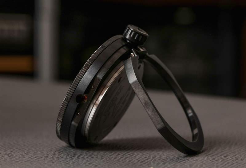 用于操作手表本身的表冠位于表殼 12 點鐘位置,而 3 點鐘位置的表冠實際上是用于將內(nèi)殼固定到外殼的螺釘。擰下 3 點鐘位置的表冠可讓您輕松取下手表——即使在佩戴表帶時也是如此。取下內(nèi)殼后,可以將環(huán)形腿從表殼中鉸出來,讓您可以將手表放在桌子上作為小時鐘。