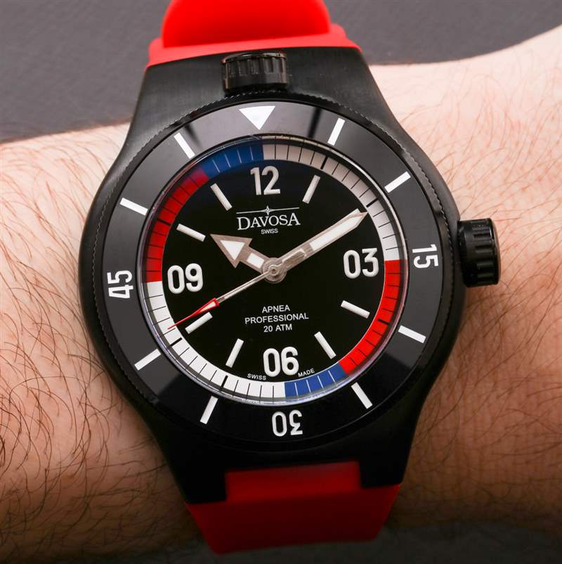 術(shù)語“呼吸暫停”通常與睡眠障礙有關(guān),即在睡眠期間停止呼吸。另一方面,呼吸暫停潛水顯然是自由潛水的一個術(shù)語,潛水員在沒有空氣供應(yīng)的情況下游泳,看看他們能在水下停留多深和多長時間。表盤上的“Apnea Professional”一詞可能有點誤導(dǎo),因為我不知道需要定期自由潛水的專業(yè)人士(這似乎是一種愛好或運動,而不是專業(yè)人士需要的東西)。手表對呼吸暫停潛水員有什么好處?這就是藍(lán)色、白色和紅色表盤戒指的用武之地。這個彩色戒指不僅為 Davosa 的新潛水表增添了受歡迎的個性,而且還用于呼吸練習(xí),以幫助在潛水前調(diào)節(jié)呼吸暫停潛水員。這個想法是使用表盤上的秒針,廣告訊息廣告信息結(jié)束
