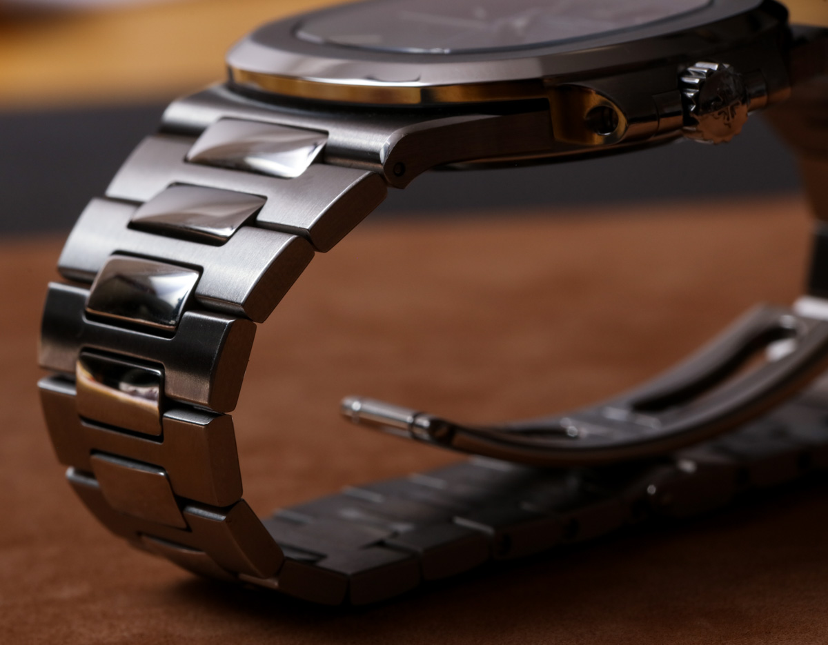 我的結論是,百達翡麗 Nautilus 是男士手鐲首飾的一個很好的例子,它恰好附有一塊手表。表殼和表鏈的鋼結構也防止它過于自命不凡。一位非常受人尊敬的制表師不僅為設計提供了應有的精加工和結構,而且還為手表配備了最好的非復雜機械機芯。與勞力士不同,機芯并沒有隱藏在堅固的底蓋后面。相反,百達翡麗希望 Nautilus 的所有者能夠通過藍寶石水晶底蓋炫耀并展示閃亮的內部制造的 324 SC 機芯。