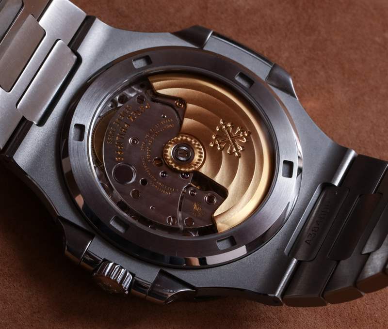 該機芯是您應該在簡單而高端的運動手表中尋找的一個很好的例子。讓 324 SC 型機芯令人印象深刻的除了其高水平的精加工外,還在于其纖薄的外形。機芯厚度僅為 3.3 毫米,總而言之,Nautilus 保持 120 米的防水性,盡管厚度僅為 8.3 毫米。自動轉子采用實心 21k 金制成,這實際上意味著它的重量足以保持較高的上鏈效率。該機芯以 4 赫茲(28,800 次/小時)的頻率運行,具有 45 小時的動力儲存,并且還配備了百達翡麗內部的 Gyromax 擺輪和 Spiromox 擺輪游絲。我會說性能可能與勞力士的“頂級天文臺”相當或在可觀的范圍內。然而,精加工是另一回事——百達翡麗用日內瓦波紋裝飾表面,小,