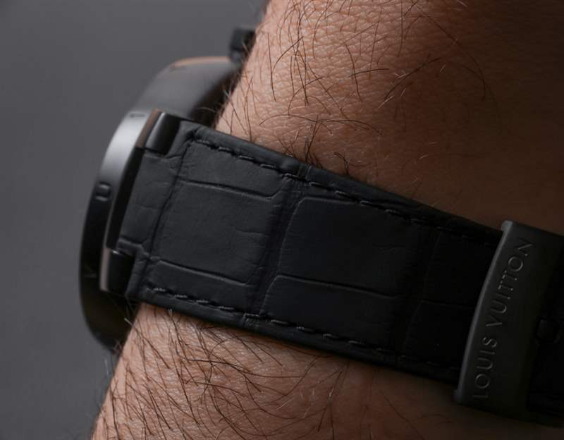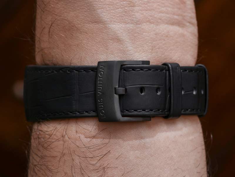 Tambour All Black Petite Seconde 內部是一個基本的瑞士 ETA 機芯,我相信是 ETA 2895 自動機芯。它是一款 4Hz 高級機芯,具有 42 小時動力儲存。手表隨附的表帶是迷人的啞光黑色鱷魚皮,如果您要求,路易威登會向您出售各種其他表帶。