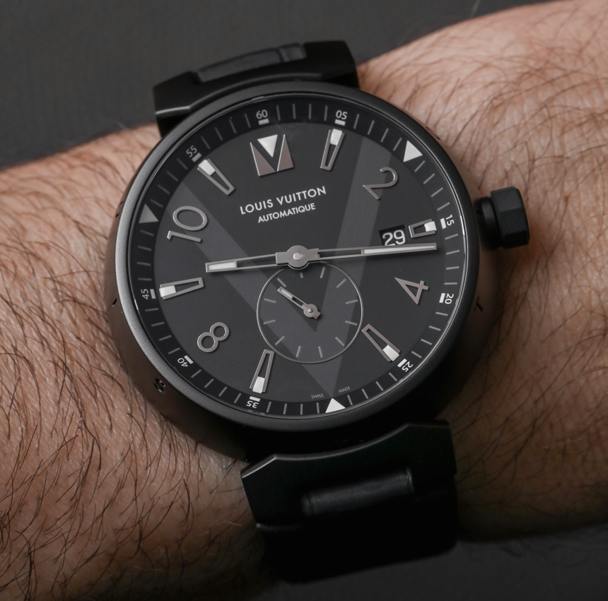 “全黑!”?每次我看到或聽到這句話時,我都會想象讓-克洛德·比弗(Jean-Claude Biver)睜大眼睛大聲宣告它,而他握緊的拳頭則充滿感情地拍在最近的桌子上。盡管路易威登不受比弗先生控制,但該人是路威酩軒 (Louis Vuitton Mo?t Hennessy) 的制表主管。顯然,他已經產生了一些影響。路易威登 Tambour All Black Petite Second 和 Tambour All Black Chronographe 是第一款“全黑”顏色的路易威登時計。Jean-Claude Biver 不一定發明了全黑手表的概念,但他確實通過宇舶 Big Bang All Black 幫助普及了它。