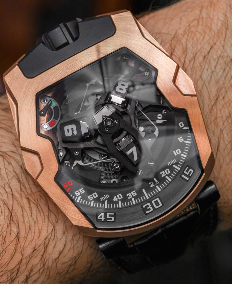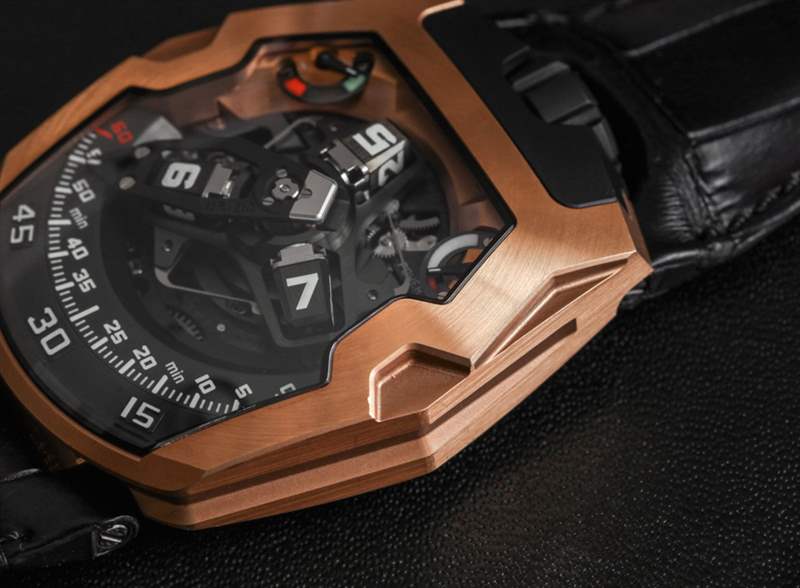 大多數版本的 UR-210 都是鋼制的,這使得這款紅金模型與眾不同。雖然貴金屬 Urwerk 時計絕不是新事物,但引人注目的貴金屬外殼 Urwerk 時計僅次于鋼和鈦等更實用的金屬。當然,這與省錢無關,因為我們談論的手表平均每塊售價可能為 100,000 美元。這真的只是品牌的主題和重點,它不是舊世界的奢侈品,而是未來主義的會議機制。廣告訊息廣告信息結束