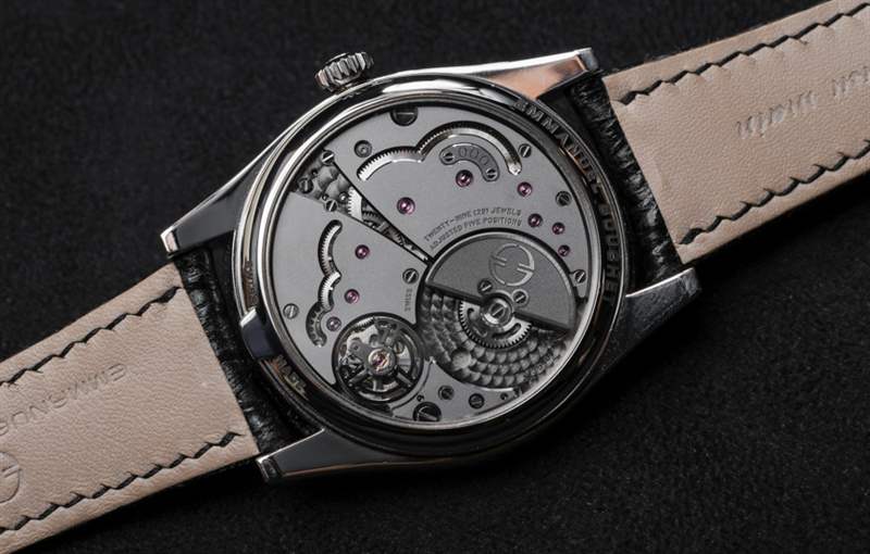 為手表提供動力(并通過底蓋很好地展示)是內部制造和設計的 Emmanuel Bouchet 機芯 EB89F 自動機芯。這是該品牌首款自動機芯,采用優雅的微型擺陀。它提供 45 小時的動力儲存,我相信它的工作頻率為 3Hz。機芯設計遵循當前融合新舊美學風格的當代趨勢。工業拋光的緞面表面與手工拋光的斜邊形成藝術對比。機芯在背板上進一步被賦予了珍珠拋光的背景。從美學上講,這種運動不一定是女性化的,但實際上有點男性化。它也很好地說明了人們購買 Emmanuel Bouchet EB02 時計的聲望和血統。