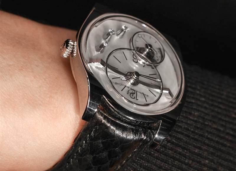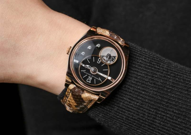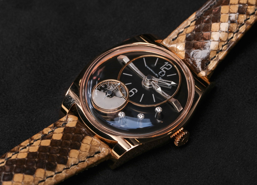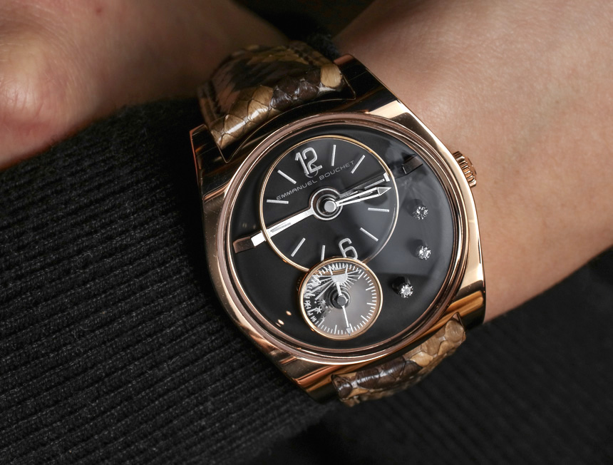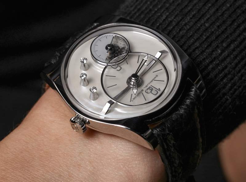 對于這只手表的攝影,我決定把它戴在女人的手腕上。EB02 不是一款小巧的手表,但其造型和主題顯然是為女性設計的。EB02 寬 39 毫米,厚不到 10 毫米。Complication One 表殼的縮小尺寸效果很好,我仍然認為這是目前最迷人和看似簡單的現代簡約表殼設計之一。Emmanuel Bouchet 提供 EB02 高拋光 18k 白金或玫瑰金。表盤選項包括黑色縞瑪瑙和可愛的白色珍珠母貝。您可以通過提供異國情調的蛇皮帶等產品來了解該品牌是如何變得有趣的。