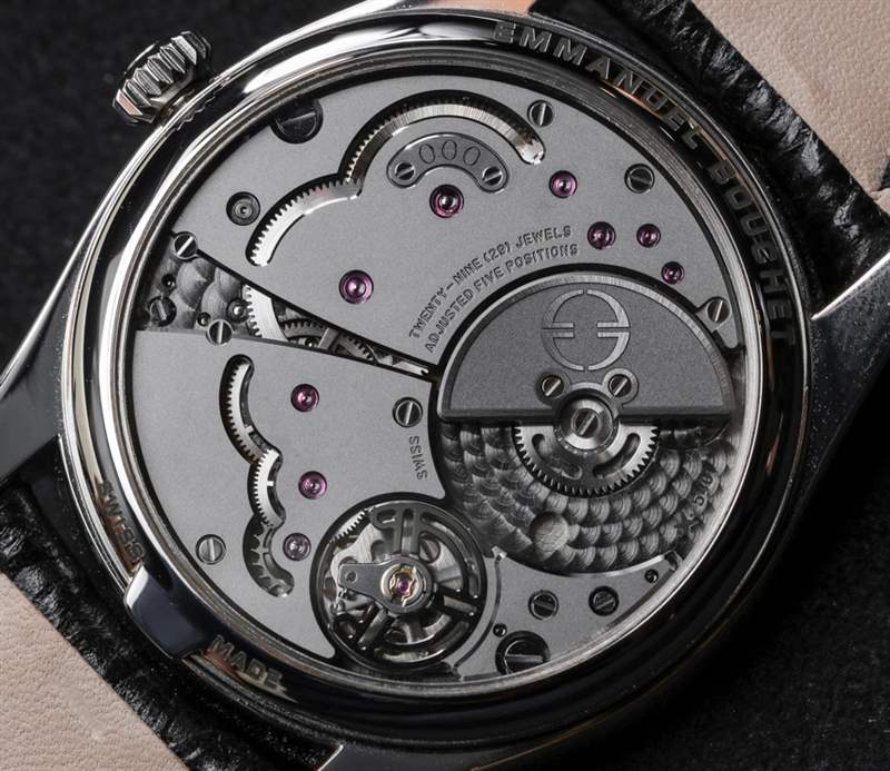 在功能上,EB02 比 Emmanuel Bouchet 更復雜的 Complication One 簡單得多。有人可能會爭辯說,該品牌的一些魅力在一款看起來不像其他任何東西,但功能卻像其他東西一樣的手表中消失了。您可以參考上面關于 Complication One 的文章,看看它是如何工作的。話雖如此,非標準的時間指示方式很難做到正確,并且常常讓佩戴者覺得讀取時間比標準方式更費力。