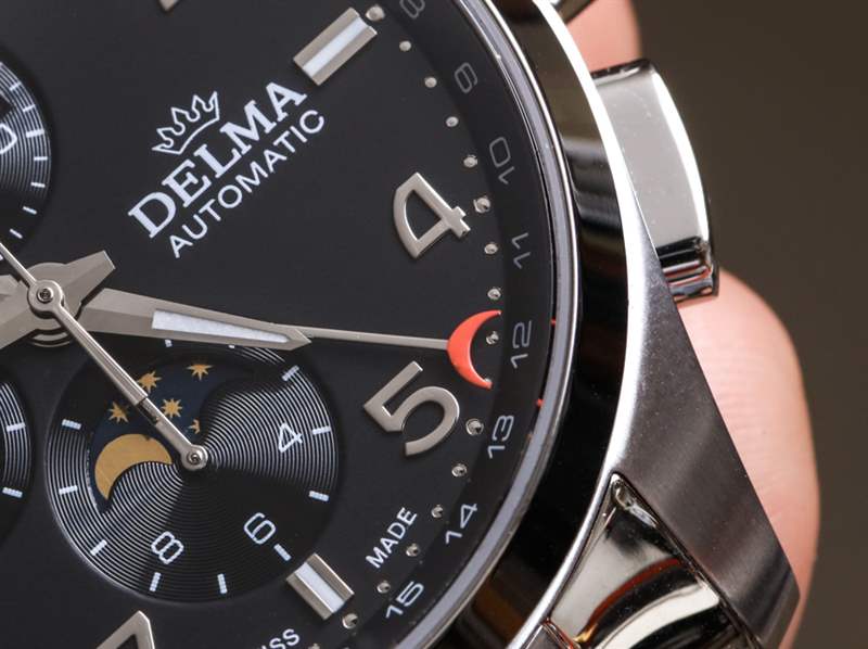 Delma 包含了您對這個價位的時計所期望的大部分功能。表盤上方是藍寶石水晶,表盤細節非常好,表殼拋光很好。握在手中時,您會獲得良好的視覺重量感,同時感覺您確實在握著一個嚴肅的、傳統主題的機械時計。