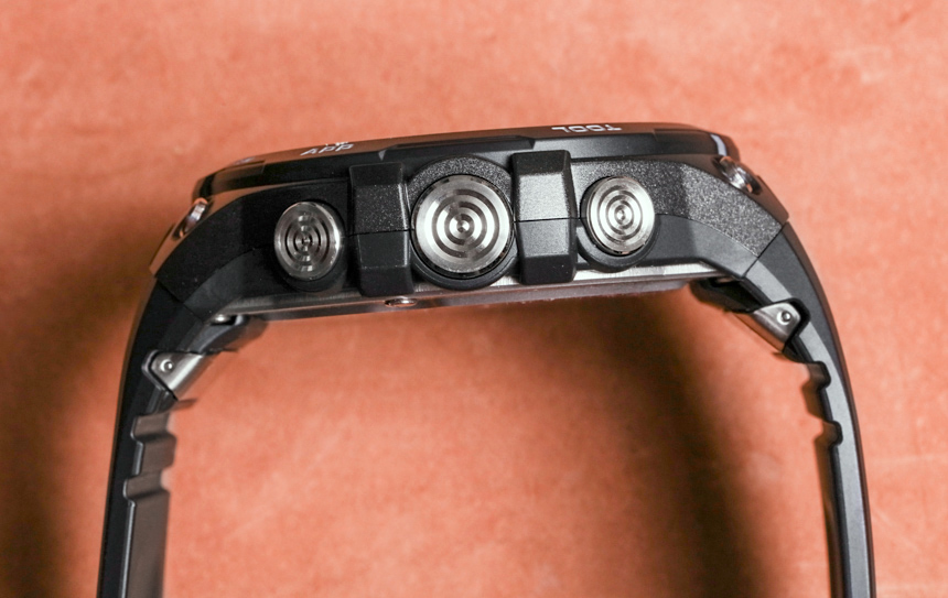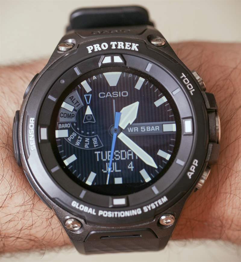 為了讓 WSD-F20 感覺更像 Pro Trek 手表,卡西歐重新設計了前擋板,我實際上同意與原始 WSD-F10 更簡單的表殼相比更具吸引力。維護的是手表的各種傳感器,例如指南針和氣壓計/高度計模塊以及添加的 GPS 模塊。這不僅使卡西歐 WSD-F20 更符合其他競爭性智能手表,而且有助于手表成為 Pro Trek 真正需要的實際探索手表。