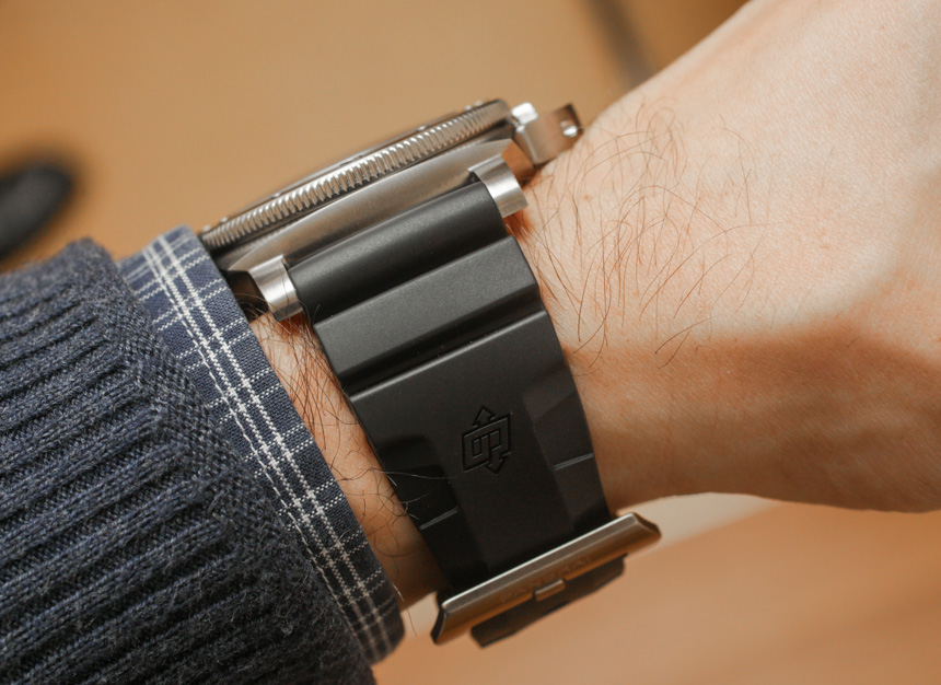 附在 Luminor Submerisble 1950 BMG-TECH 表殼上的是一條簡單的黑色橡膠潛水式表帶。如果沒有人知道,您幾乎會認為沛納海想要謹慎地解釋為什么要使用這種特殊類型的表殼材料。沛納海網(wǎng)站本身確實以技術(shù)方式討論了大塊金屬玻璃,但在他們關(guān)于消費者可能會選擇這種材料的原因的信息中,有點未能直截了當(dāng)。更重要的是,PAM 692 不是限量版的一部分,因此這意味著沛納海對這種材料在市場上的表現(xiàn)感到好奇,并對擴大生產(chǎn)持開放態(tài)度。