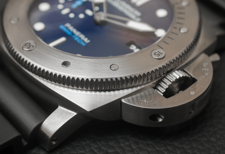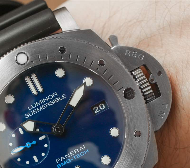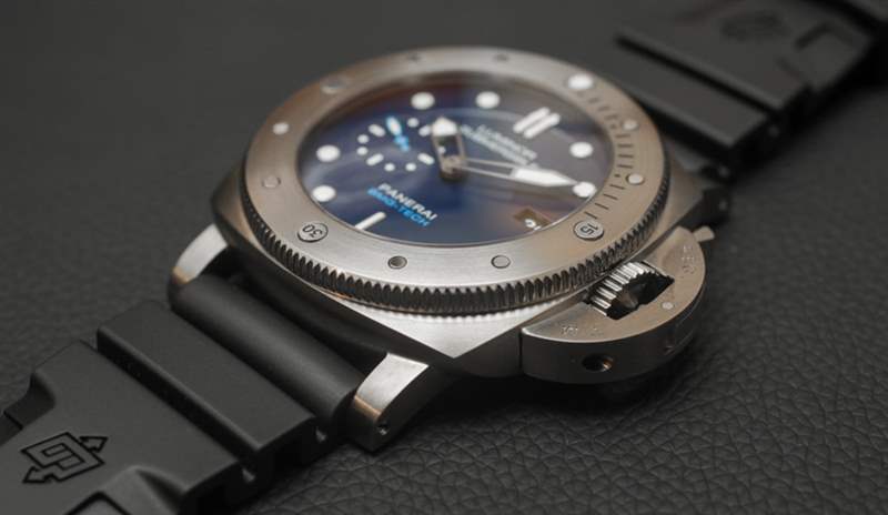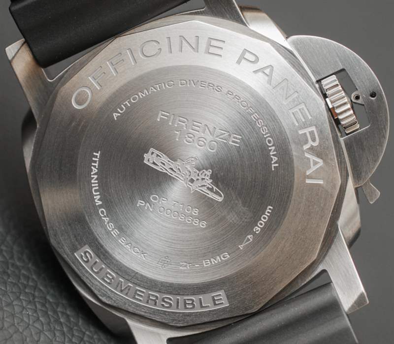其他品牌使用各種類型的合金,例如表殼。我記得 Audemars Piguet 有時會使用一種他們稱之為“Cermet”(陶瓷金屬)的材料來制作表圈,也可能是整個表殼的材料。金屬陶瓷的優(yōu)點與 BMG-TECH 相似,因為它像陶瓷一樣堅韌,但具有金屬的視覺外觀。金屬陶瓷的顏色有點深,所以它讓我相信塊狀金屬玻璃對于這款沛納海 PAM 692 來說可能有點不同。表背是鈦,這也恰好是表殼中最多的部分細節(jié)。我的直覺告訴我,雖然大塊金屬玻璃是一種引人注目的材料,但它比大多數(shù)金屬更難加工(因此也更昂貴)。
