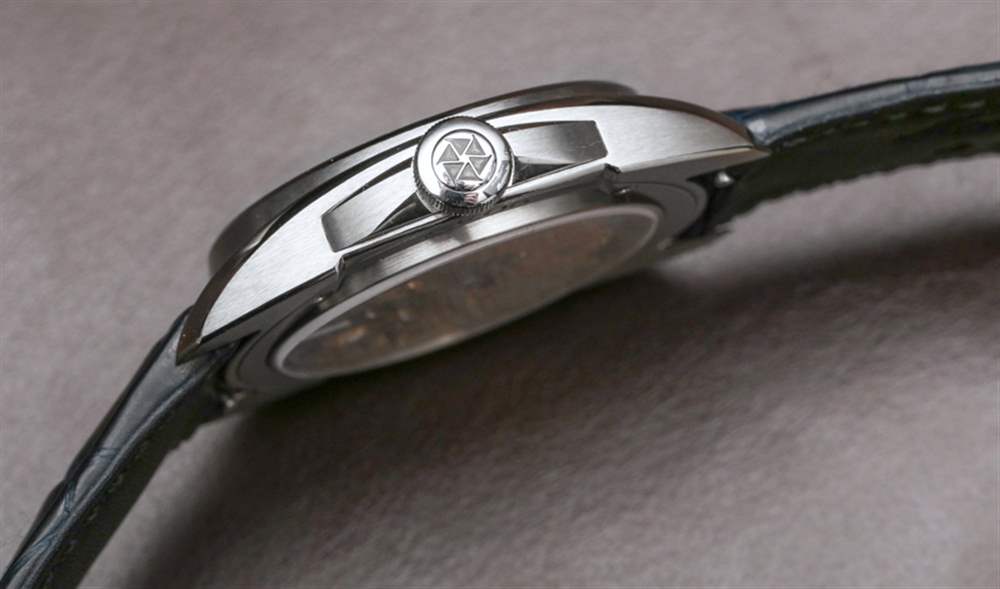 機芯還通過小秒盤指示時間。請注意,在我拍攝的這個特殊模型上,手工制作的手不是最終的——因為它們的中心工作人員將被藍色。AK-06 機芯的一個有用功能是歸零和秒針機制。這意味著當您拉出表冠時,擺輪不僅會暫停,而且秒針會自動歸零,以使時間設置更加精確。這不是我第一次看到這樣的功能,但它非常罕見,而且我以前只在現代意義上的德國手表上見過它。