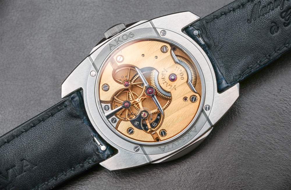 幾乎所有關于 AK-06 機芯的設計都是為了美觀和實用。機芯平衡的表盤視圖以巧妙的主要機芯部件布局為特色,同時讓擺輪保留在手表背面。AK-06 機芯的表盤和表殼背面令人印象深刻,并且在視覺上也與眾不同。表盤設計有一種受歡迎的蒸汽朋克氛圍,這得益于各種顏色和形狀,都增加了視覺趣味。制表師和 AkriviA 創始人 Rexhep Rexhepi 真的全力以赴,確保他最簡單的手表也可以說是他迄今為止最漂亮的手表。這也可以說是 2017 年最重要和最令人向往的新手表機芯之一。