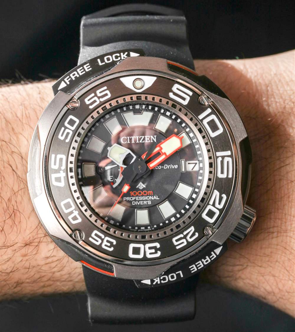 我有幸在 2017 年巴塞爾鐘表展發(fā)布之前獲得了有關(guān)Citizen Eco-Drive Promaster Professional Diver 1000m 手表的信息,當(dāng)時(shí)我們?cè)?aBlogtoWatch 上首次亮相.?西鐵城為新系列的“專業(yè)”潛水表感到自豪,該系列將他們的 Eco-Drive 光動(dòng)力機(jī)芯安裝在能夠潛水 1000 米的潛水表中。老實(shí)說(shuō),我不確定這能解決什么具體需求,但我可以說(shuō),如果你是一名專業(yè)潛水員,擁有一塊既準(zhǔn)確又不需要更換電池的手表(假設(shè)它是石英供電的)是個(gè)好主意。稍后再談。在親眼目睹 52.5 毫米寬的超級(jí)鈦金屬表殼并戴上后,我意識(shí)到西鐵城不是在開玩笑。Eco-Drive Promaster Professional Diver 1000m 是一款專為嚴(yán)肅的潛水專業(yè)人士設(shè)計(jì)的儀器——但手表愛(ài)好者也會(huì)從中獲得極大的樂(lè)趣。