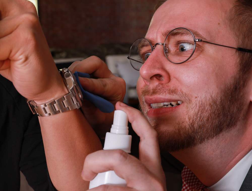 對于 The Watch Butler 而言,結識新客戶只能親自完成。手表管家似乎經常參加手表收藏家和其他志同道合的愛好者聚集的活動。一些人開玩笑說 The Watch Butler 是一個破壞手表派對的人(這似乎有一定的真實性,因為似乎沒有人記得邀請過他)。在此類活動中,The Watch Butler 以其獨特的手工打結復古領結和“The Watch Butler”皮革公文包而獲得認可,公文包中始終裝有他的各種手表清潔噴霧配方和精心挑選的清潔布系列。有著很少接觸他人眼睛的嚴肅臉龐,