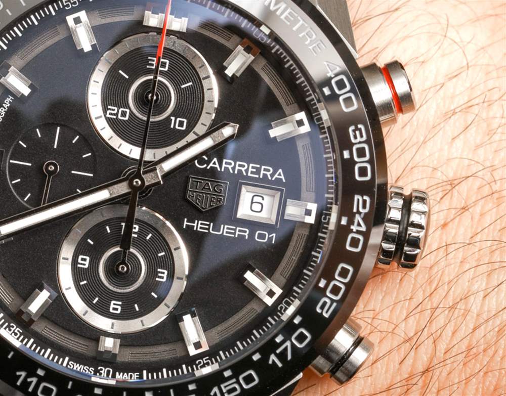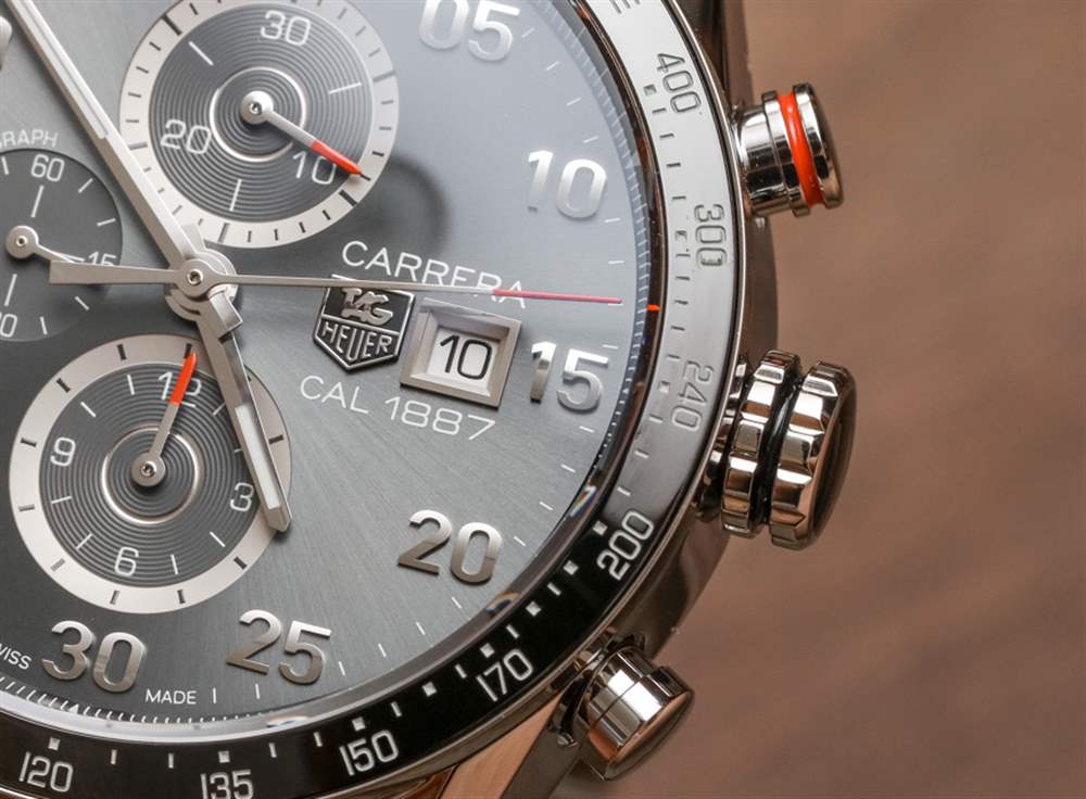 我選擇比較這兩種型號的另一個原因是它們各自對經典的 Carrera Chronograph 手表表盤提供了自己的看法,其深色調以淺紅色為重點,帶有棒形/數字小時標記。它是一種英俊而年輕的運動外觀,大約 20 年來一直是手表界的主打產品。