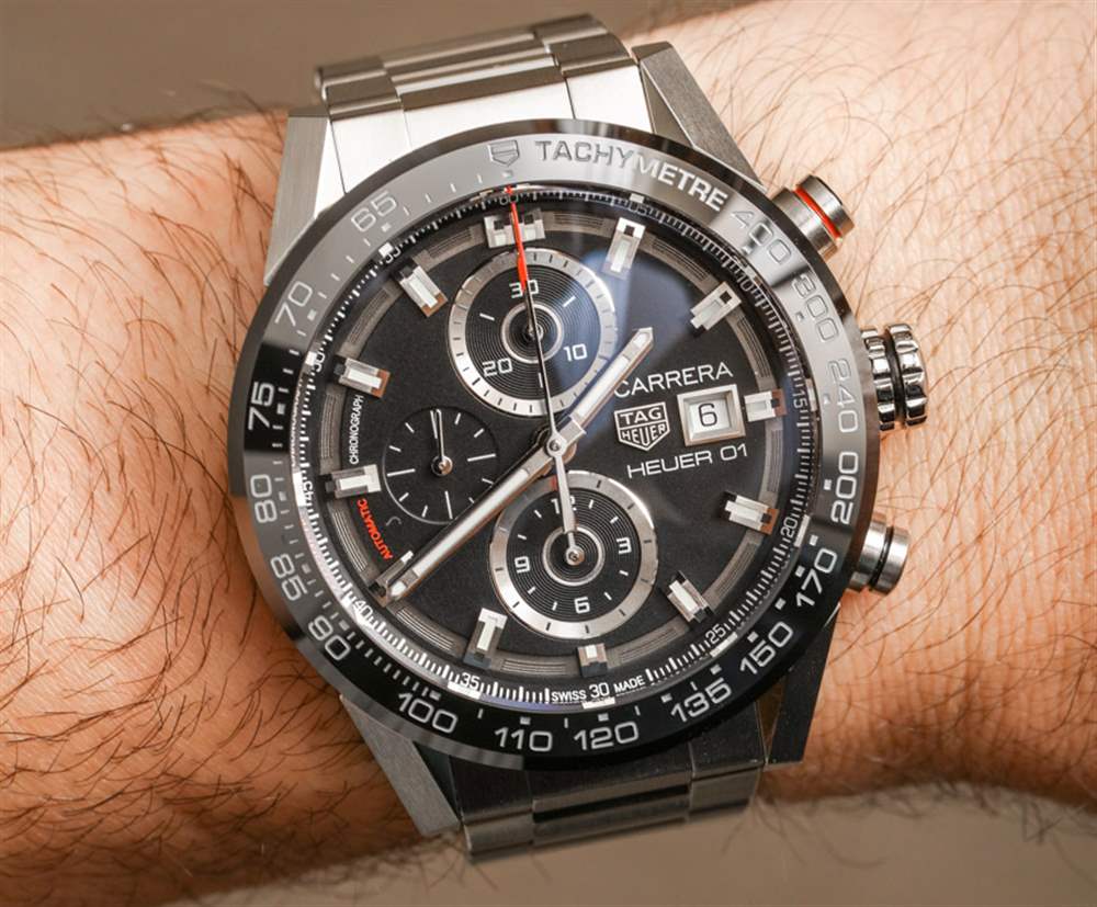 說到泰格豪雅 Carrera Heuer 01,這款特殊的型號是該系列中最保守的型號之一。大多數泰格豪雅 Carrera Heuer 01 腕表都以鏤空表盤和狂野現代的設計為標志。我認為它們是“嬰兒 Hublot Big Bang”手表——實際上有很多原因。這款特別的泰格豪雅 Carrera Heuer 01 沒有鏤空表盤,在傳統和現代設計之間提供了一種特殊的混合外觀。aBlogtoWatch 之前在此處對更現代的 TAG Heuer Carrera Heuer 01 腕表進行了全面評測。