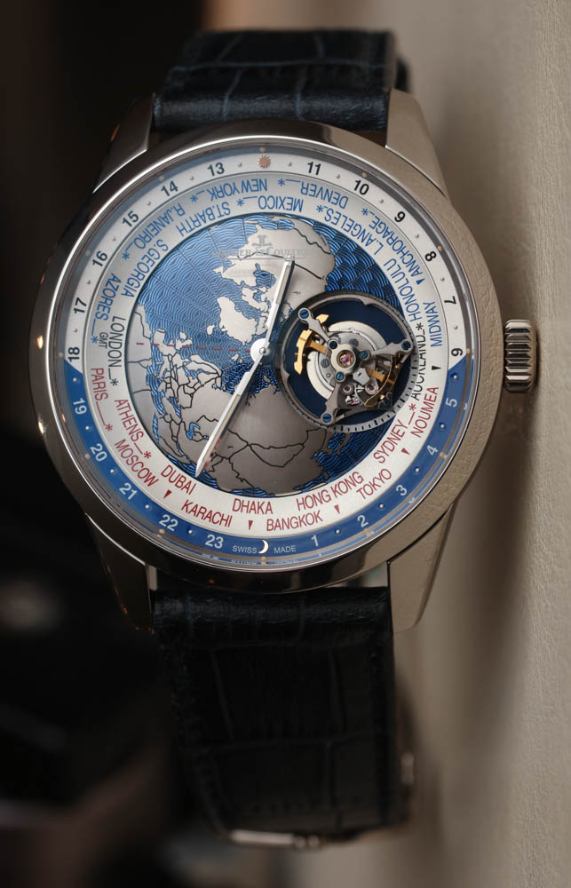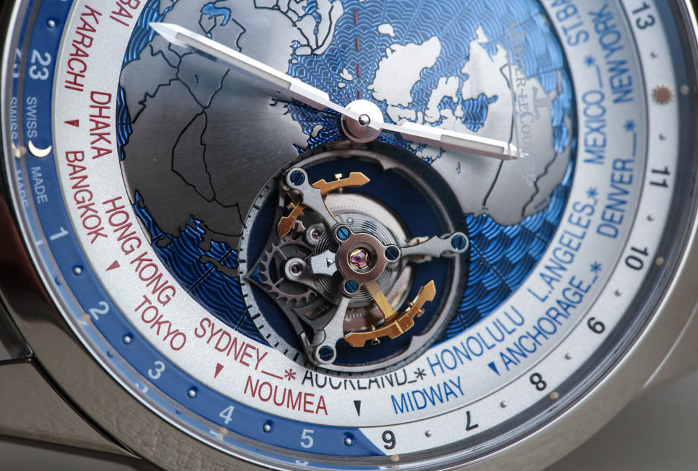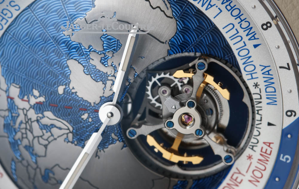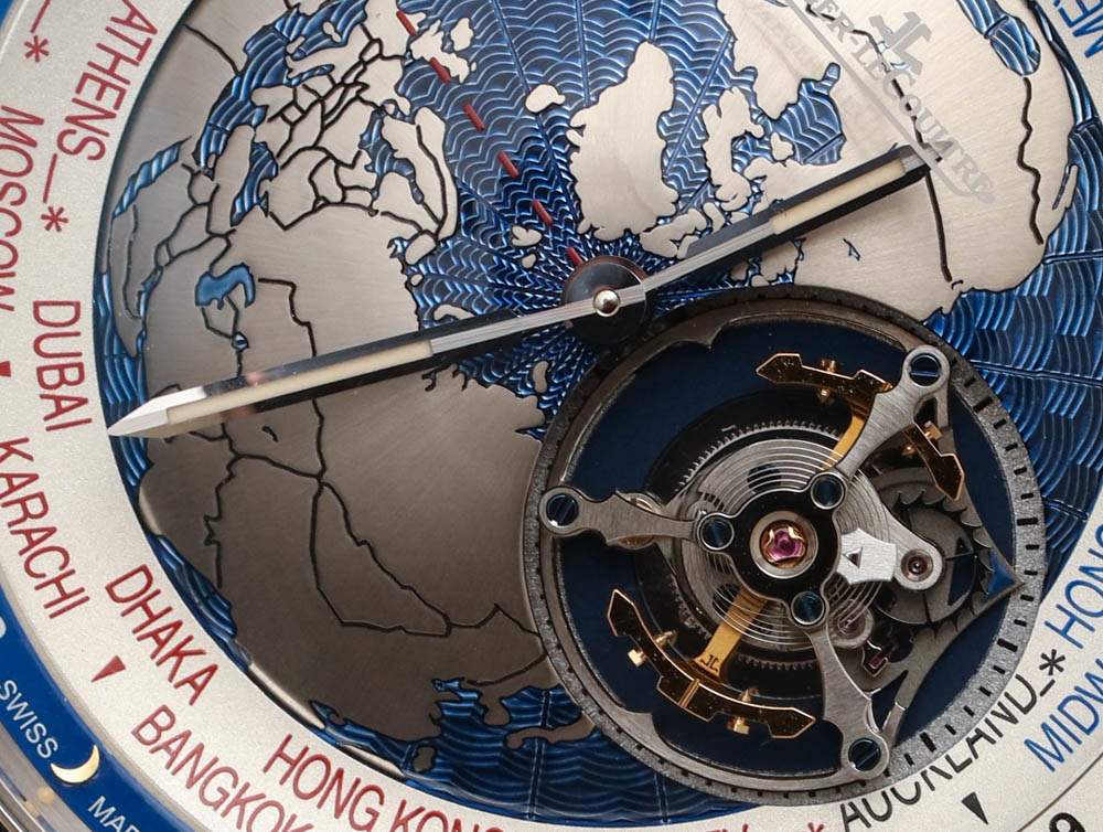 Jaeger-LeCoultre 聲稱在世界時間顯示盤中心的“地球表盤”上使用了扭索飾式機器雕刻來呈現(xiàn)海洋的外觀。它不是一個特別有用的表盤中心,但它在視覺上很有吸引力,這正是一些人認為的地球物理學(xué),好吧,地球物理學(xué)。與此相同的其他 Geophysic 手表系列主題包括應(yīng)用在表盤外圍的小發(fā)光點。