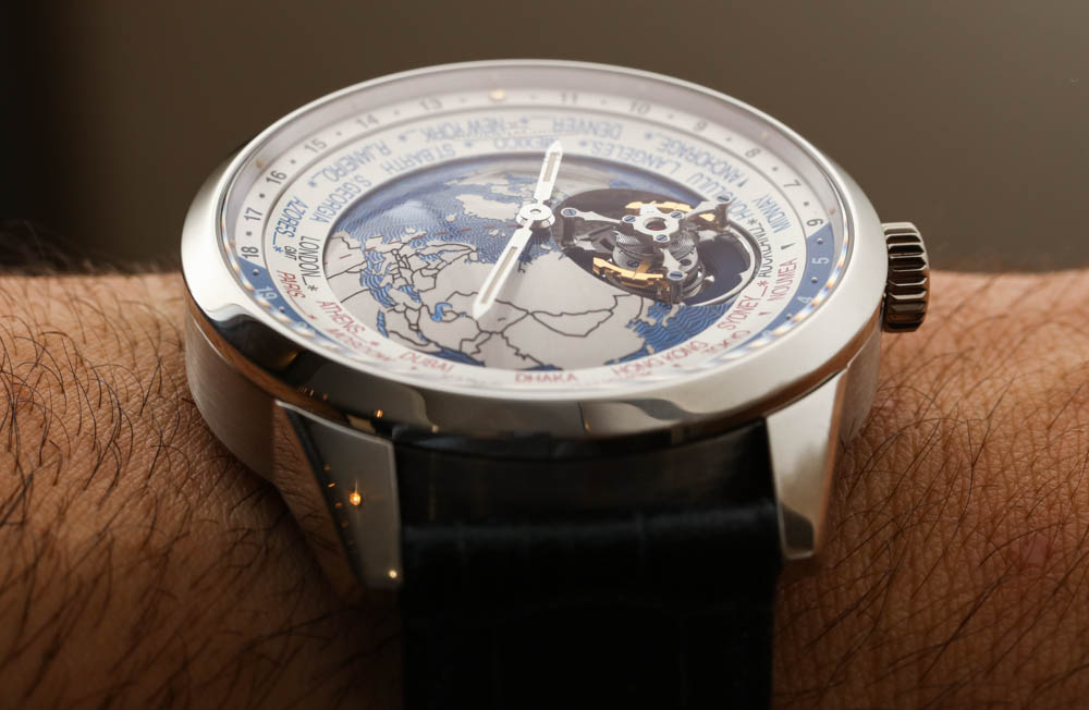 飛行陀飛輪似乎直接從表盤中出來,而表盤大部分是圓頂和三維的,這一點增強了這一點。非常酷的是,陀飛輪是如何通過世界時間盤繞著表盤運行的(有些人會稱之為陀飛輪中的陀飛輪)。是的,它確實會阻止讀取一些表盤,但包含陀飛輪并沒有丟失任何真正的功能。對于那些真正喜歡世界計時器并且也想要陀飛輪機械復(fù)雜性(和奢華地位)的人來說,這是一個奇妙的元素組合。