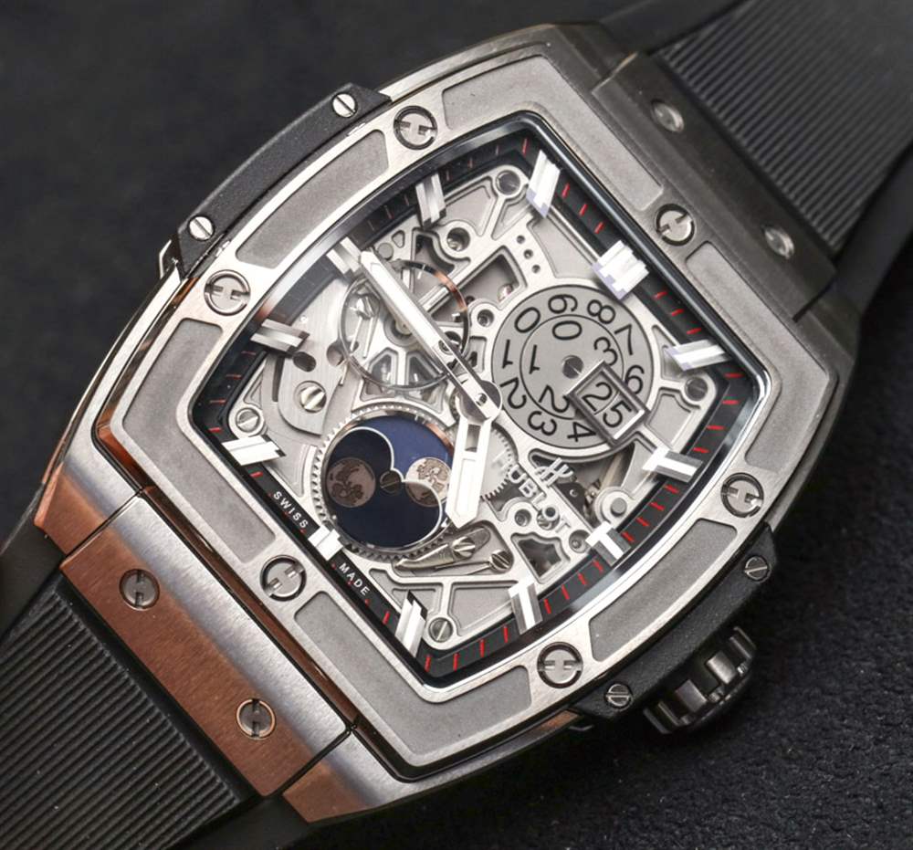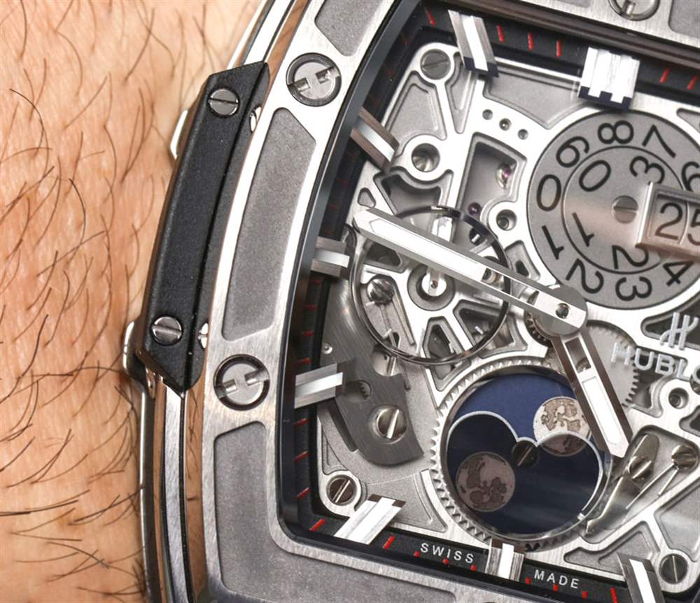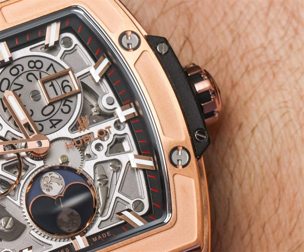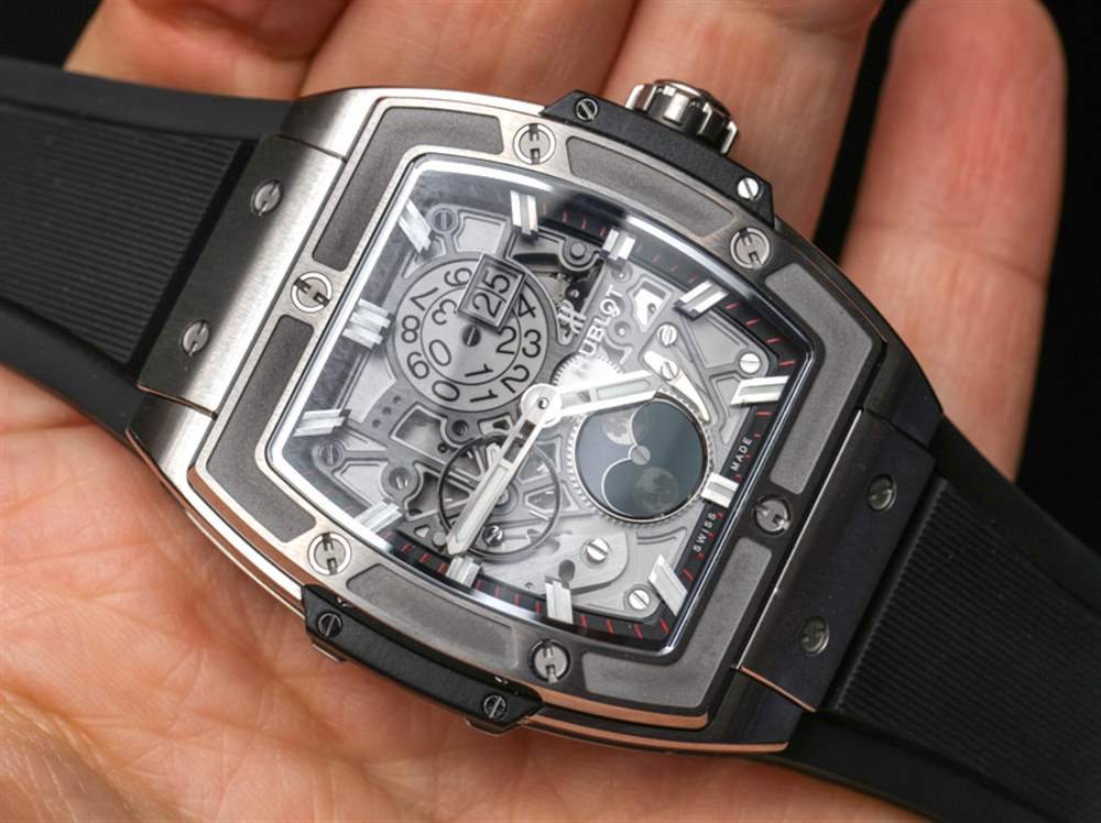 早在 2011 年,Hublot最初推出的手表最終成為“Hublot Spirit of Big Bang”。我記得在日內(nèi)瓦舉行的活動,當時讓-克勞德·比弗宣布他“接受”了生產(chǎn)手表的請求,其內(nèi)容類似于“如果宇舶表生產(chǎn)一款受理查德·米勒啟發(fā)的手表會怎樣?”?這兩家高端手表制造商傾向于以非常不同的價格提供產(chǎn)品(盡管兩者都非常高端),并相互尊重。由此產(chǎn)生的作品是“宇舶杰作”,我可以在這里親身體驗。它也是我們今天在這里看到的 Hublot Spirit Of Big Bang Moonphase 手表的直接前身。