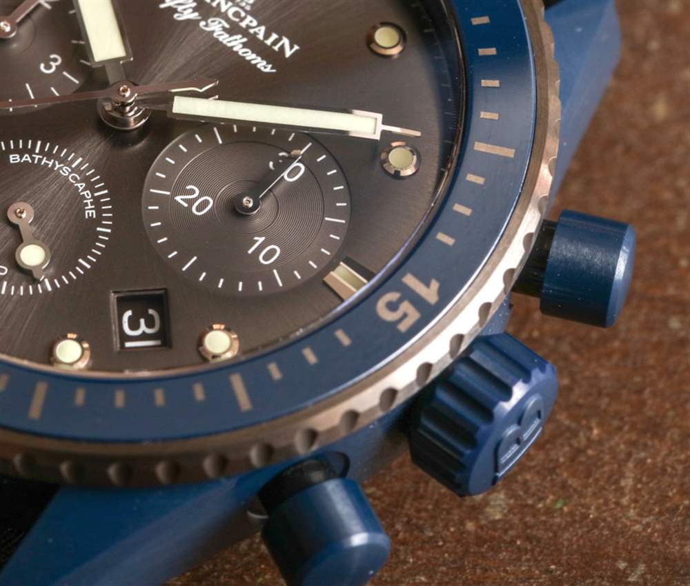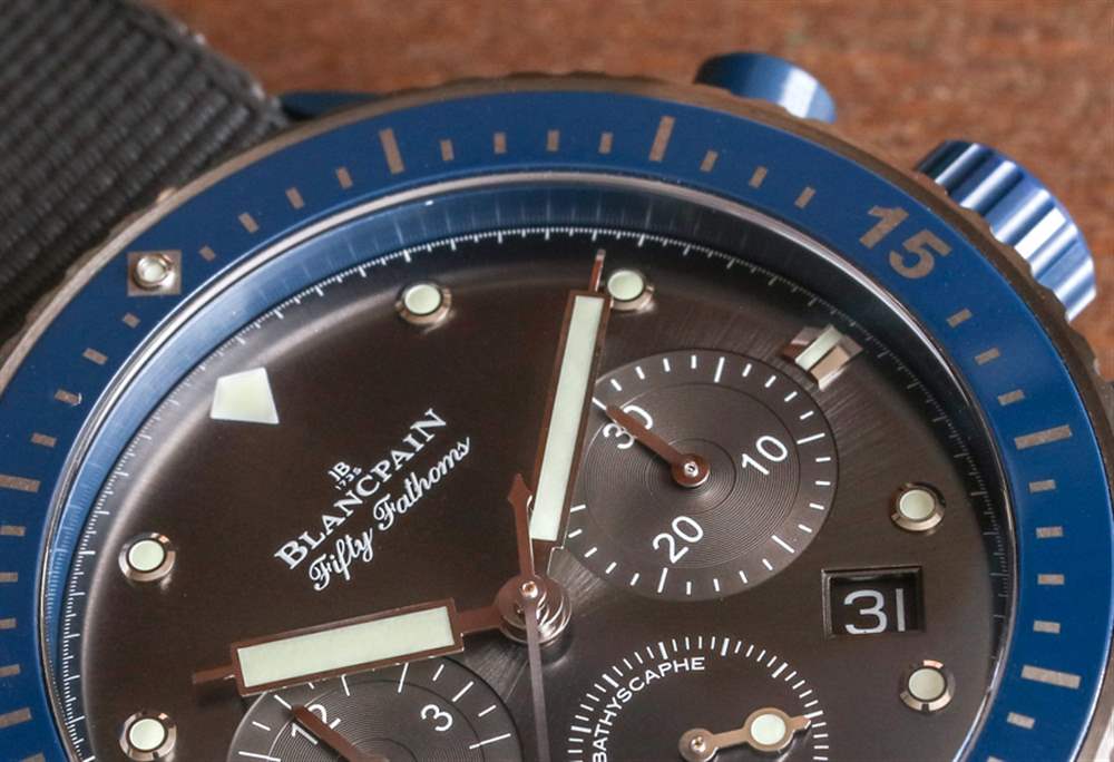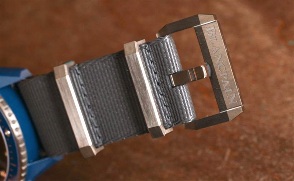 這是我戴過的第一個藍(lán)色陶瓷表殼(來自一個奢侈品牌),它看起來很棒——尤其是在有光澤的灰色調(diào)旁邊。在某些燈光下,藍(lán)色陶瓷看起來就像是黑色,但在光線充足的情況下,表殼材料的豐富藍(lán)色調(diào)就出來了。寶珀真的不能用藍(lán)色調(diào)淡一點,因為在生產(chǎn)方面它會使顏色變得太不穩(wěn)定。