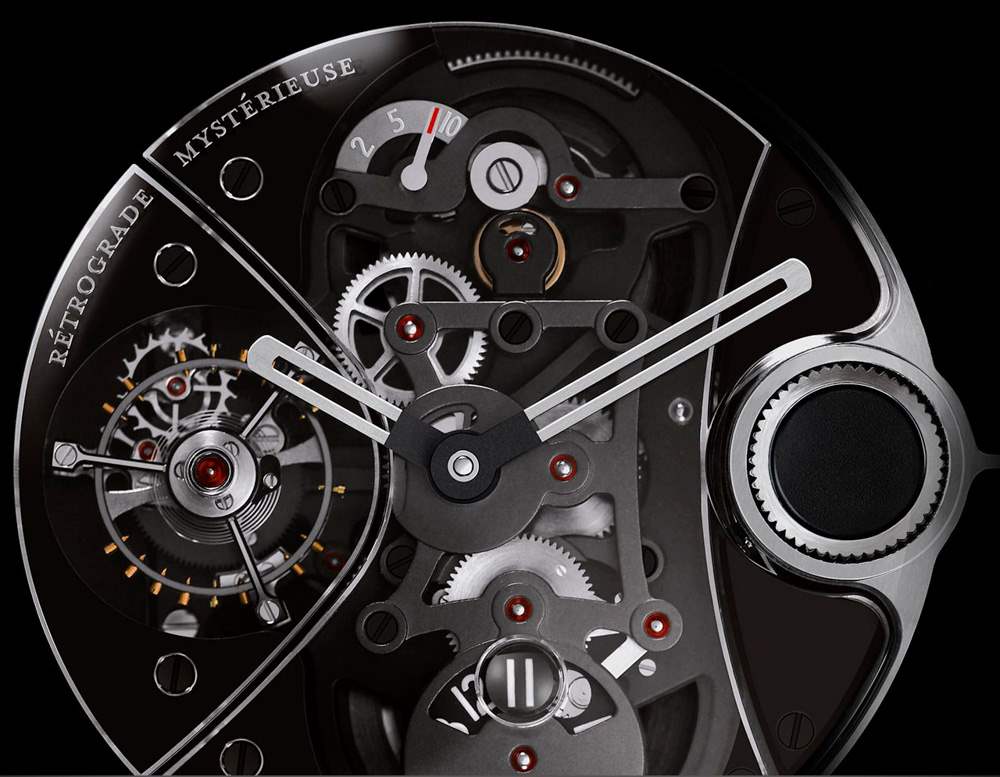 更大的尺寸是必要的,以適應被稱為香奈兒 RMT-10 機芯的非常奇怪的機芯。這個名字只是意味著它有逆跳分針、陀飛輪和大約 10 天(237 小時)的動力儲存。我不知道它工作得有多好或有多可靠,但該運動的純粹努力和功能令人印象深刻——盡管它可以說是純粹的時間順序混淆。從本質上講,整個運動的重點是工程練習。APRP 創造了一個以前不存在的問題,然后設計了一種解決該問題的方法。這就是 Chanel J12 Rétrograde Mystérieuse Tourbillon 時計的真正問題,因為它試圖解決的問題都是完全編造的,很難解釋,它的解決方案至少使理解和操作手表變得奇怪。如果有一個很好的例子可以回答沒有人提出的問題,那就是香奈兒 J12 逆行神秘陀飛輪。