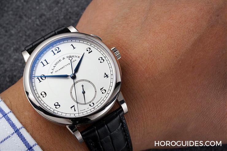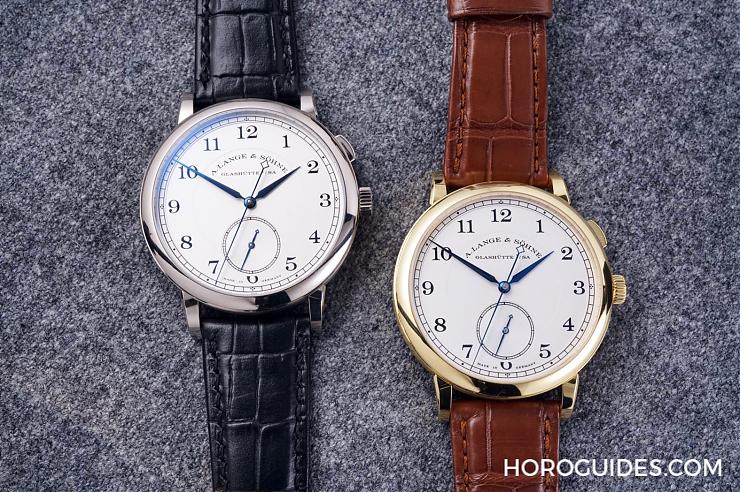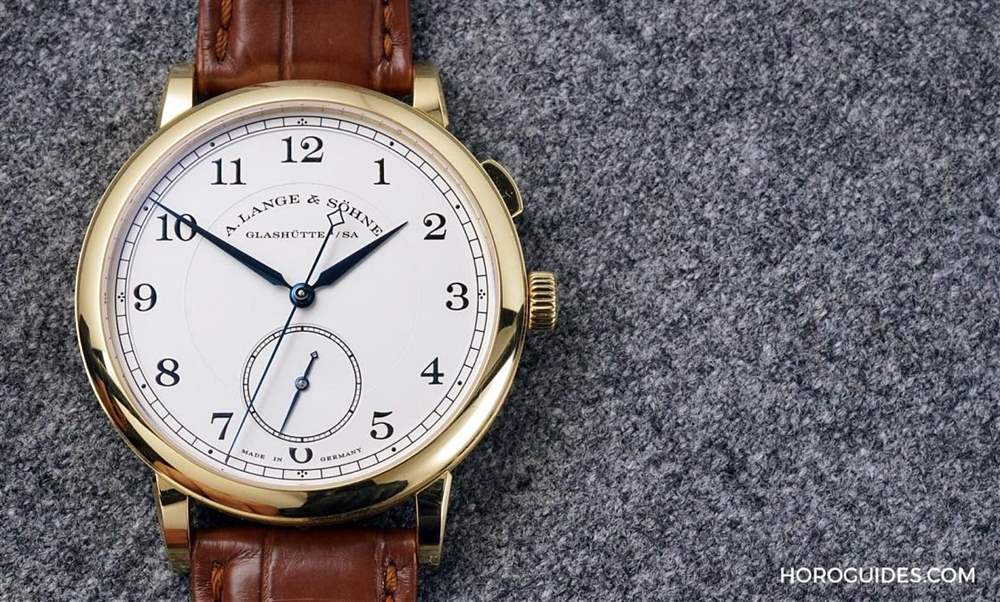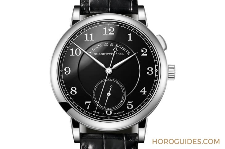 Homage to Walter Lange乍看之下和一般表款差不多:40.5mm表徑、6點鐘位置小秒針、銀白色表盤、典雅的黑色軌道式刻度、修長的藍鋼指針,不過一根新的中央獨立秒針,可以透過2點鐘位置的按鈕來自由啟動、停止,并且以一秒一格的跳動來走時。