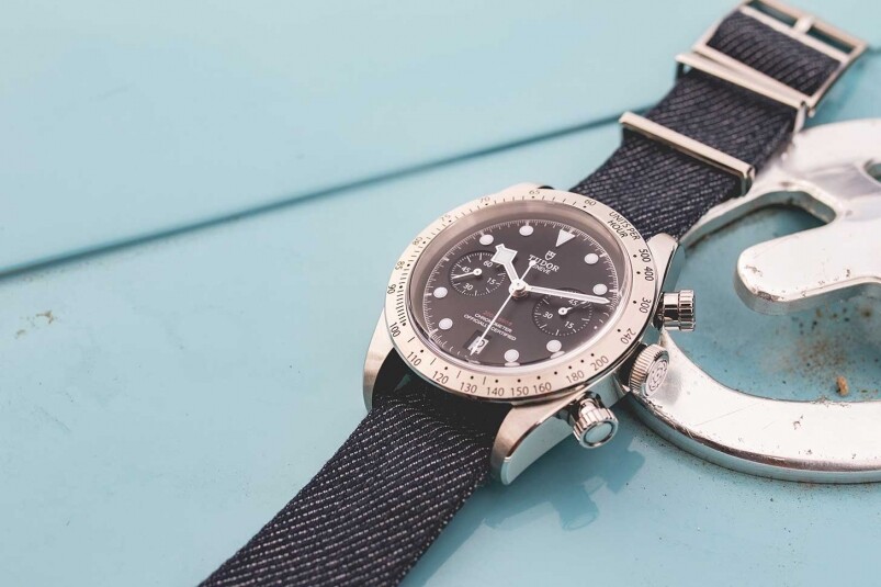 最深得我心的是,無論你是購買鋼帶款抑或是皮帶款式,Tudor都會(huì)為你多配一條表帶,Black Bay Chrono配搭的是深藍(lán)色牛仔布風(fēng)提花織紋表帶,帶來復(fù)古感覺以外的味道,提供更悠閑型格的味道。不要少看這款表帶,這表帶是由帝舵表設(shè)計(jì), 再委托法國(guó)圣艾提安(St-Etienne)地區(qū)一家擁有150年歷史的家族企業(yè)制作,采用十九世紀(jì)的提花織機(jī)編織而成,絕非坊間普通表帶可以相比。