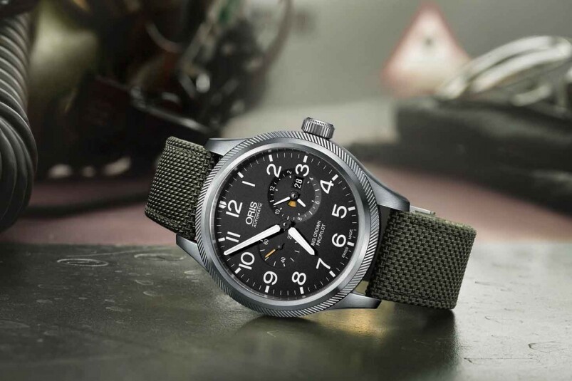 Oris這一款Big Crown ProPilot Worldtimer可以玩兩地時間顯示,而調校時間的方式比較特別,不需要靠表冠調校,而只需扭動錢幣邊沿飾紋表圈,順時針方向旋轉表圈以一小時跳躍方式向前移動中央時針,逆時針旋轉則跳回到前一小時。而三點位置的小表盤,就是顯示居住地時間(home time)的小表盤,有齊日/夜顯示及Oris 專利的日期顯示,聰明在當調整當地時間時,即使午夜之后仍可向后調整日期。
