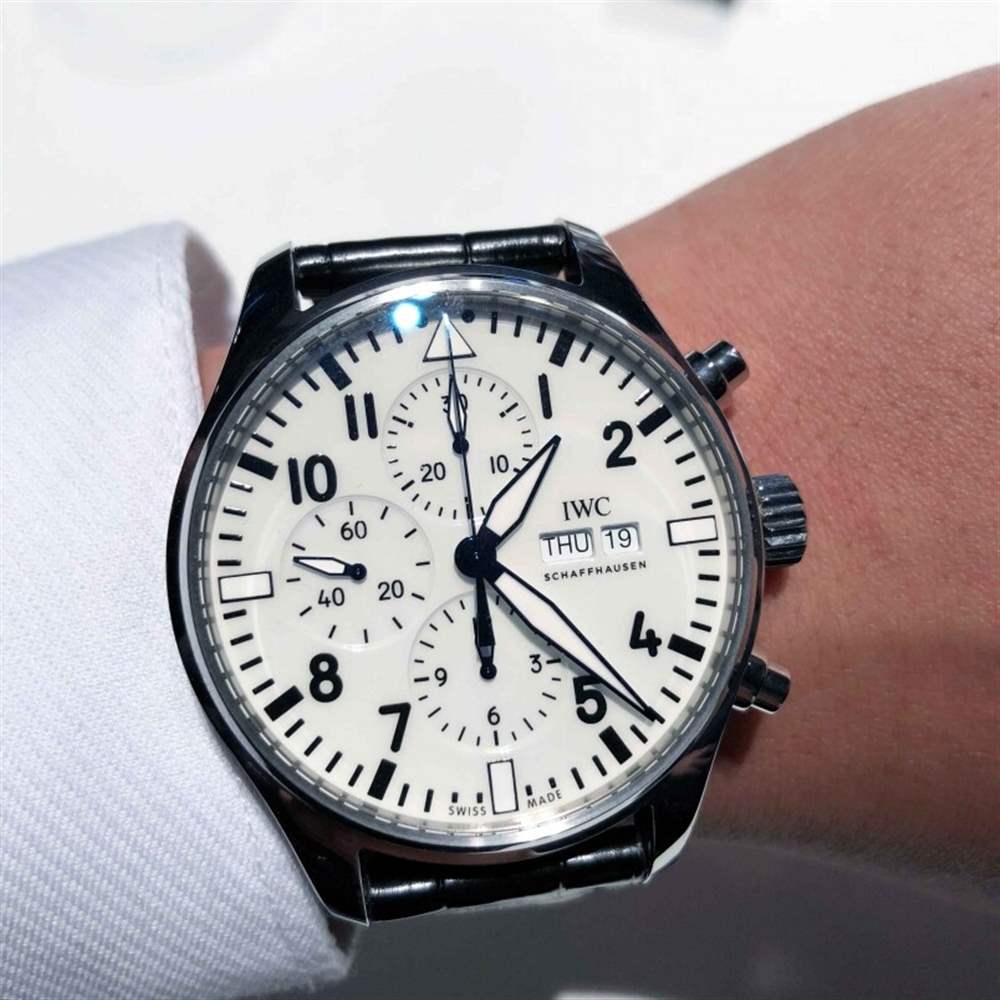 另一款是我一見愛上的IWC Big Pilot’s Big Date 「150周年」特別版,最喜歡的是這白色漆面的版本,黑色時標在表盤上猶其突出!而由于是大日期視窗,所以表盤比較簡潔,也令表盤更搶眼,而其實今回是IWC首次將Big Date放入Big Pilot’s 系列,所以特別有新鮮感,如果是一直都恨買Big Pilot’s而又未買,這款絕對要留意,因為也只是限量100枚!