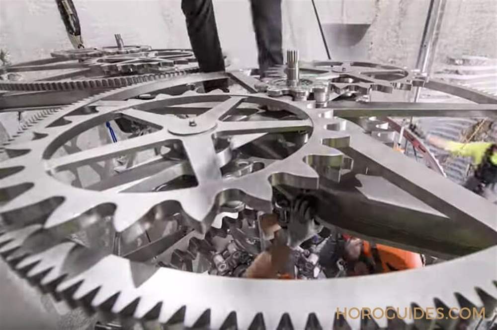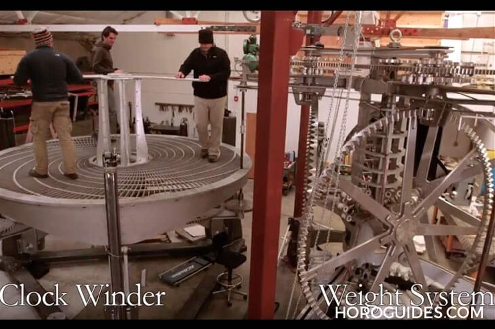 時鐘的主要動力來源有二,一是上述的溫差,二是訪客造訪時推動時鐘絞盤的上鏈動作(人力畢竟是最直接的動力輸出,既然訪客自己送上門來,一定要善加利用是吧)。由于是建在山里,因此訪客必須要步行爬升總共約150英呎、通過齒輪間、動力室,才會到達顯示天文時間、恒星與行星速度的主要房間,不過平時為了節能,時鐘并不會顯示當下時間,除非訪客轉動發條提供動力(是的,想看時間總是要有點貢獻),達8英呎大的顯示盤才會推動指針。