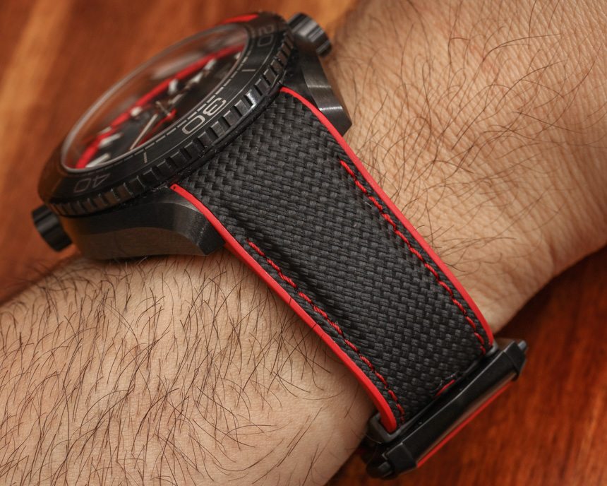 此外,歐米茄海馬系列海洋宇宙時間格林尼治標準時間深黑腕表還有幾個版本,為這一概念增添了更多風味。這個版本是參考 215.92.46.22.01.003,除了結合黑色和紅色口音外,它是歐米茄海馬海洋宇宙 GMT 深黑色模型的一個版本,主要采用全啞光處理。當我第一次在歐米茄的營銷照片中看到這款手表時,我有點不知所措,并擔心它可能過于缺乏光澤,鑒于其高端血統(tǒng)而顯得平淡無奇。就個人而言,這款手表很容易超過專業(yè)營銷圖片提供的相對乏味的展示 – 即使手表與其營銷圖片相比看起來不太可能看起來更好,但老實說這并不罕見。