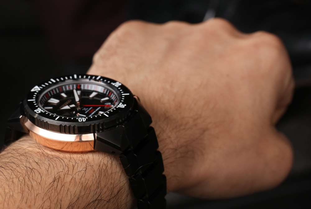 精工為 Prospex 200M 提供了幾種表殼材料和機(jī)芯。這些 SBDB017 和 SBDB018 型號(hào)采用鈦金屬表殼,后者涂有黑色和玫瑰金色調(diào)。厚實(shí)的旋轉(zhuǎn)潛水表圈采用黑色陶瓷制成。這無(wú)疑是精工迄今為止生產(chǎn)的最具未來(lái)感的主流潛水表之一。我不得不承認(rèn),當(dāng)我第一次看到圖片中的系列時(shí),我并沒(méi)有對(duì)它們印象深刻,但在將它們戴在手腕上之后,我對(duì)表殼的設(shè)計(jì)和舒適度有了更多的欣賞。Seiko Prospex 200M Transocean 是您需要戴上才能欣賞的手表之一。