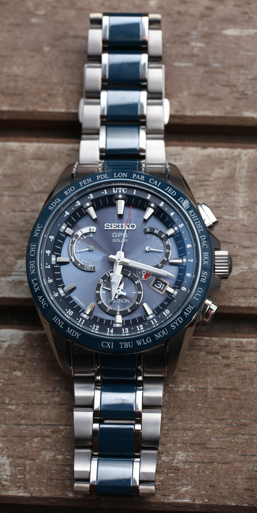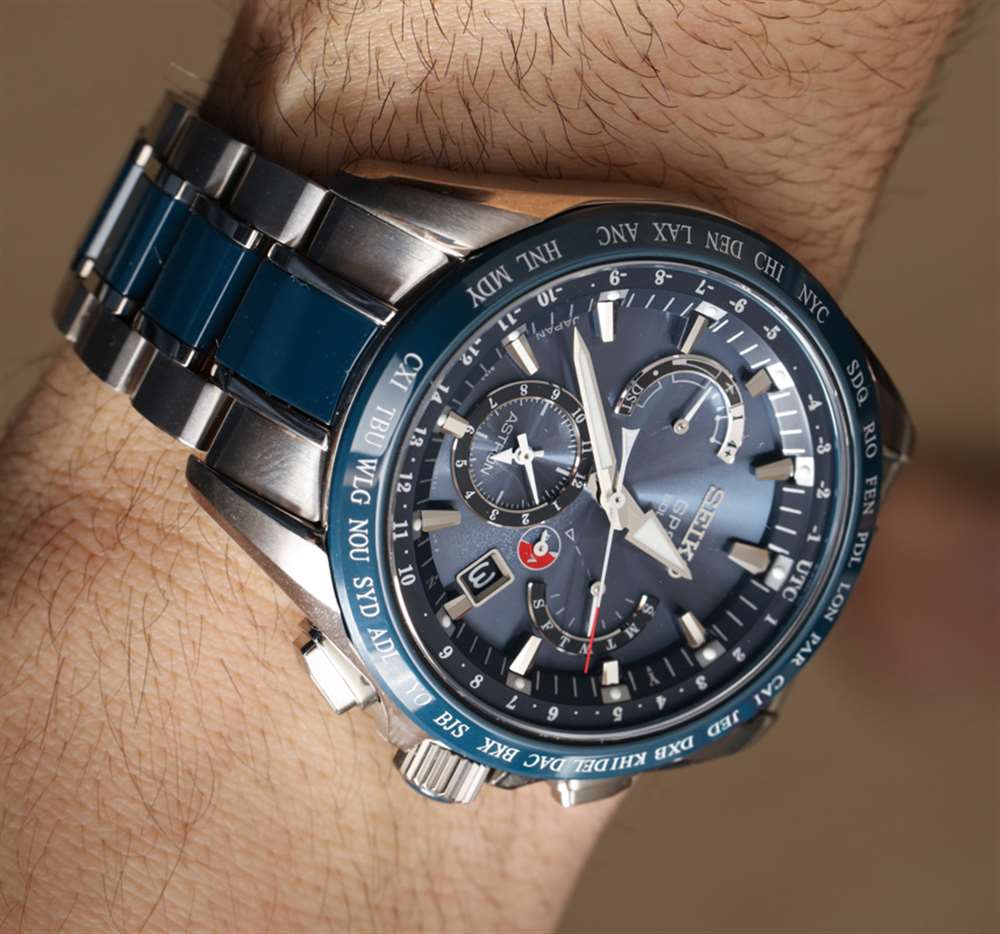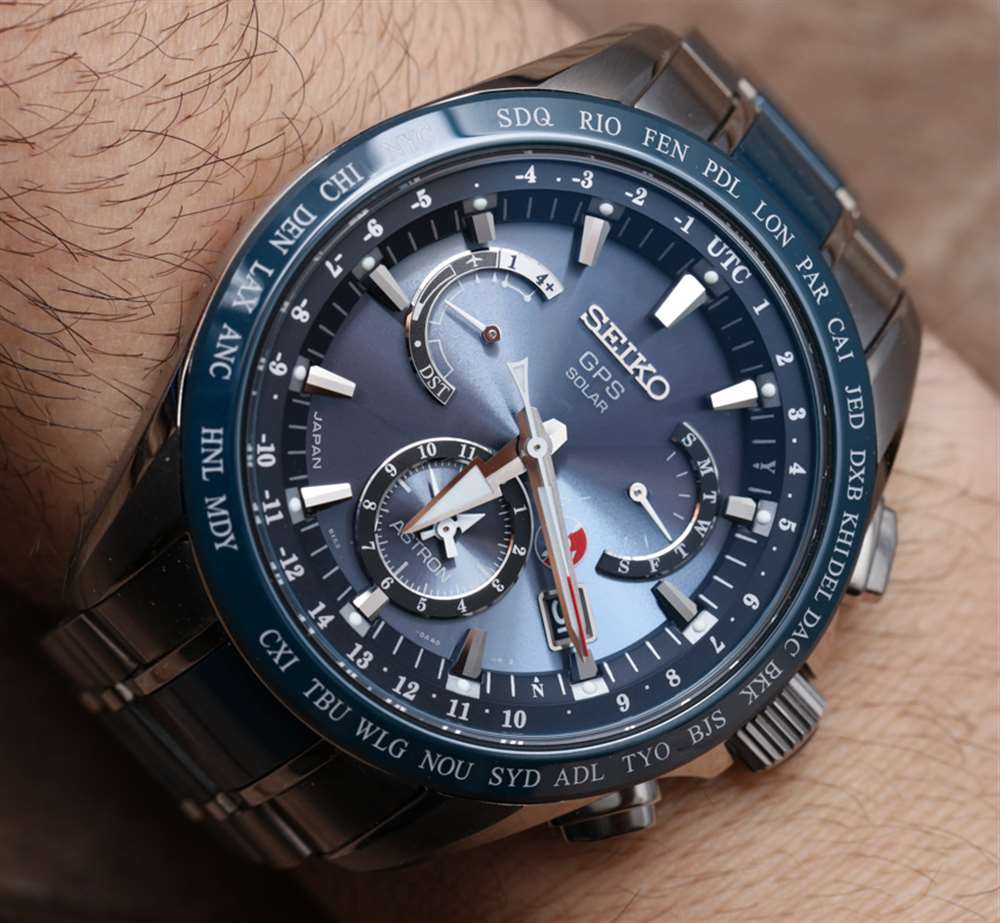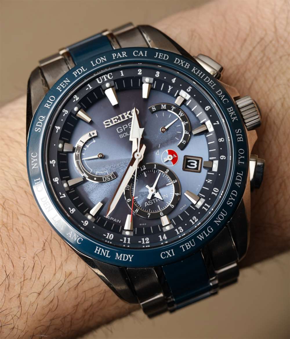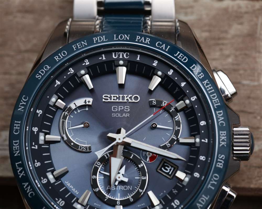 話雖如此,讓我把重點(diǎn)放在我對(duì)精工 Astron GPS 太陽能雙時(shí)間的評(píng)論上,這里是硬化鈦和藍(lán)色陶瓷的參考 SSE043。它是精工 Astron GPS 手表的最新款,包含其“8X”系列機(jī)芯。具體來說,8X53 石英機(jī)芯,光充電(不更換電池),連接全球定位衛(wèi)星信號(hào),提供時(shí)間、日期(萬年歷)、動(dòng)力儲(chǔ)存指示和第二時(shí)區(qū)作為手表名稱暗示。廣告訊息廣告信息結(jié)束