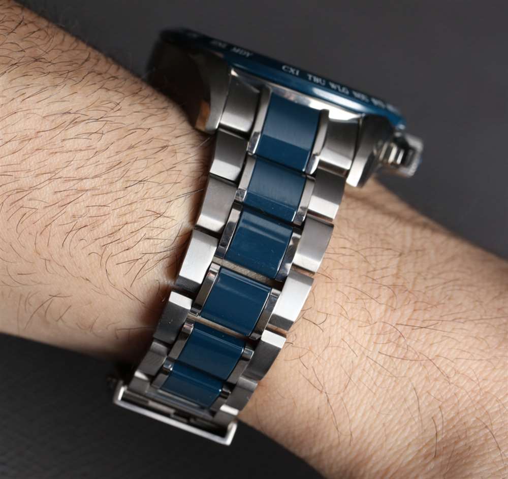 Seiko Astron GPS Solar Dual Time SSE043 戴在手腕上既迷人又現(xiàn)代,但又不失優(yōu)雅。雖然它本質(zhì)上是一款技術(shù)友好的小工具手表,但它確實(shí)具有一些性感魅力。精工喜歡在機(jī)場(chǎng)和類似地點(diǎn)為這些手表做廣告,但我認(rèn)為他們需要盡可能多地關(guān)注像這樣的手表是對(duì)一個(gè)人風(fēng)格的贊美。實(shí)際上,我從沒想過我會(huì)像這款手表一樣喜歡藍(lán)色和鈦金屬手表。精工生產(chǎn)了一系列采用鋼和鈦等材料的 Astron “8X”雙時(shí)區(qū)型號(hào),但我覺得鈦才是真正的選擇。不僅因?yàn)樗闹亓扛p,還因?yàn)榫な褂昧吮绕胀ㄢ伕凸尾恋奶幚礅仯ňしQ之為“超硬涂層”)。此外,表鏈上的表圈和中心鏈節(jié)采用陶瓷制成,具有高度抗刮擦性。表盤上方是鍍?cè)鐾改さ乃{(lán)寶石水晶。從鋼款到鈦款,它的價(jià)格要高出大約 600 美元(零售價(jià))——我強(qiáng)烈推薦它。
