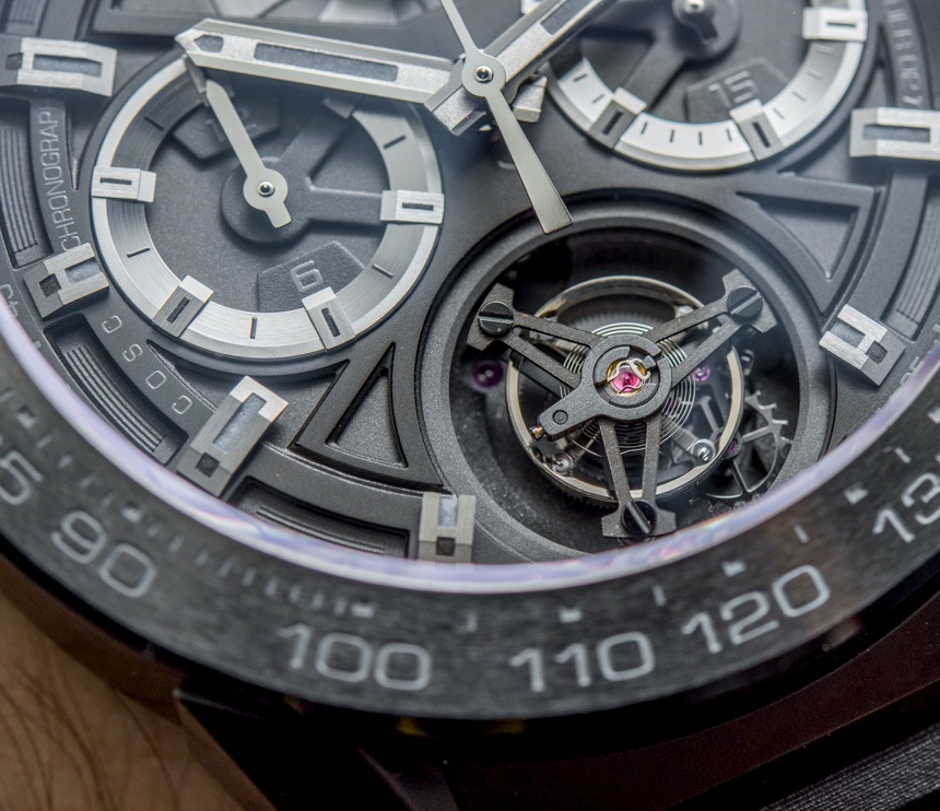 2012 年,他們推出了MikrotourbillonS,然后,就在最近的 2014 年,TAG Heuer 發布了Monaco V4 Tourbillon(在這里動手)。“皮帶驅動”并在頂部安裝橋板,Monaco V4 的陀飛輪以不同的方式設計,但它的價格也約為 170,000 美元。話雖如此,我應該指出,Heuer-02T 陀飛輪的設計靈感來自摩納哥 V4 陀飛輪的構造。TAG Heuer Carrera Heuer-02T Tourbillon 的價格也只是 Monaco Tourbillon 的一小部分,起價約為 16,000 美元。對于長期關注高端手表行業的人來說,這個數字似乎低得不可思議。