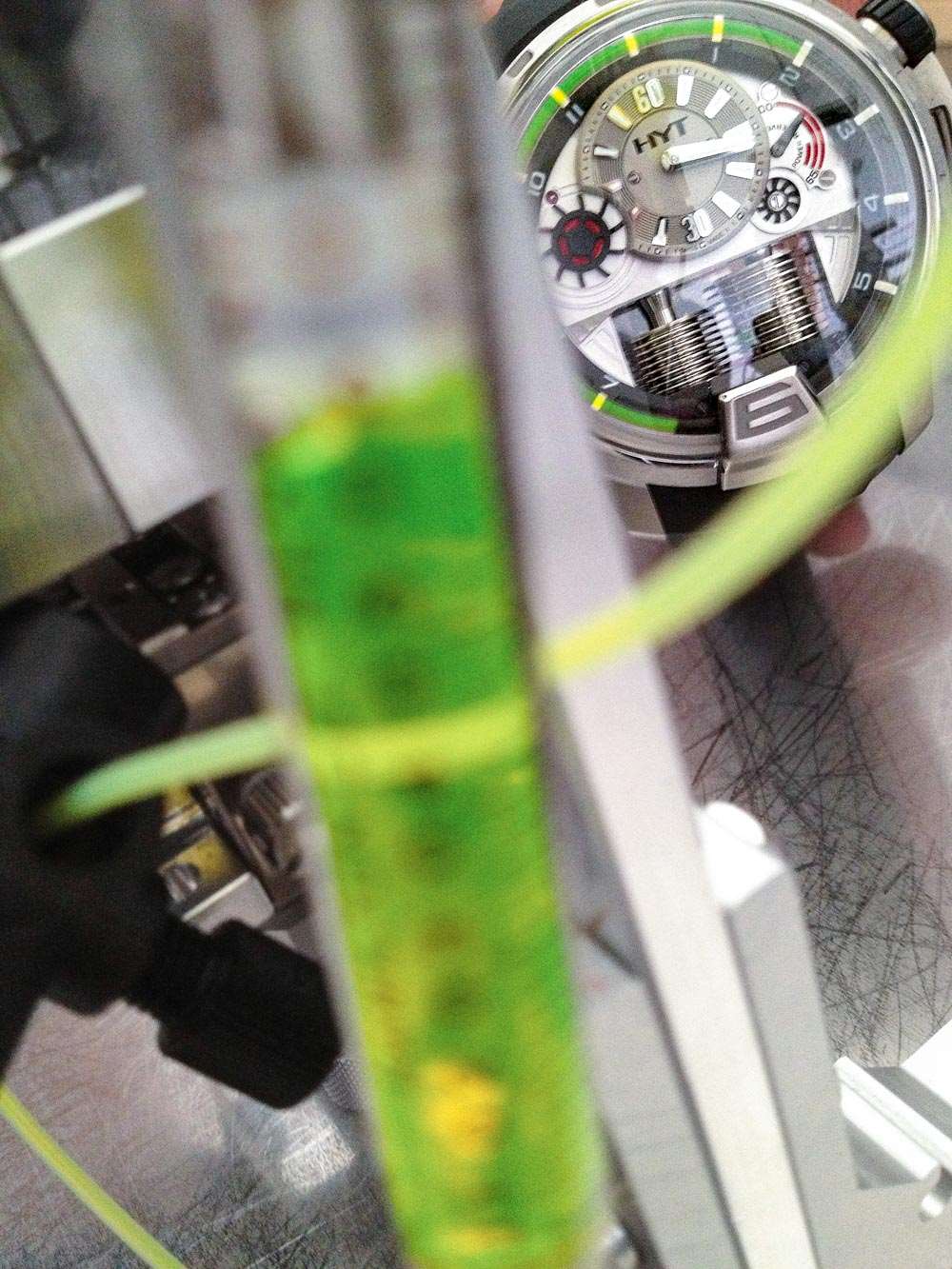 Preciflex 的成立是為了開發和生產目前僅用于 HYT 手表的技術。到目前為止,這項技術的大部分是一個由細“毛細管”和波紋管系統組成的復雜系統,用于移動液體作為機械表上指示信息的手段。除了研究和開發液體指示器技術(他們稱自己為“液壓機械鐘表專家”并不是開玩笑),Preciflex 還在用于此應用的液體本身上投入了大量研發。