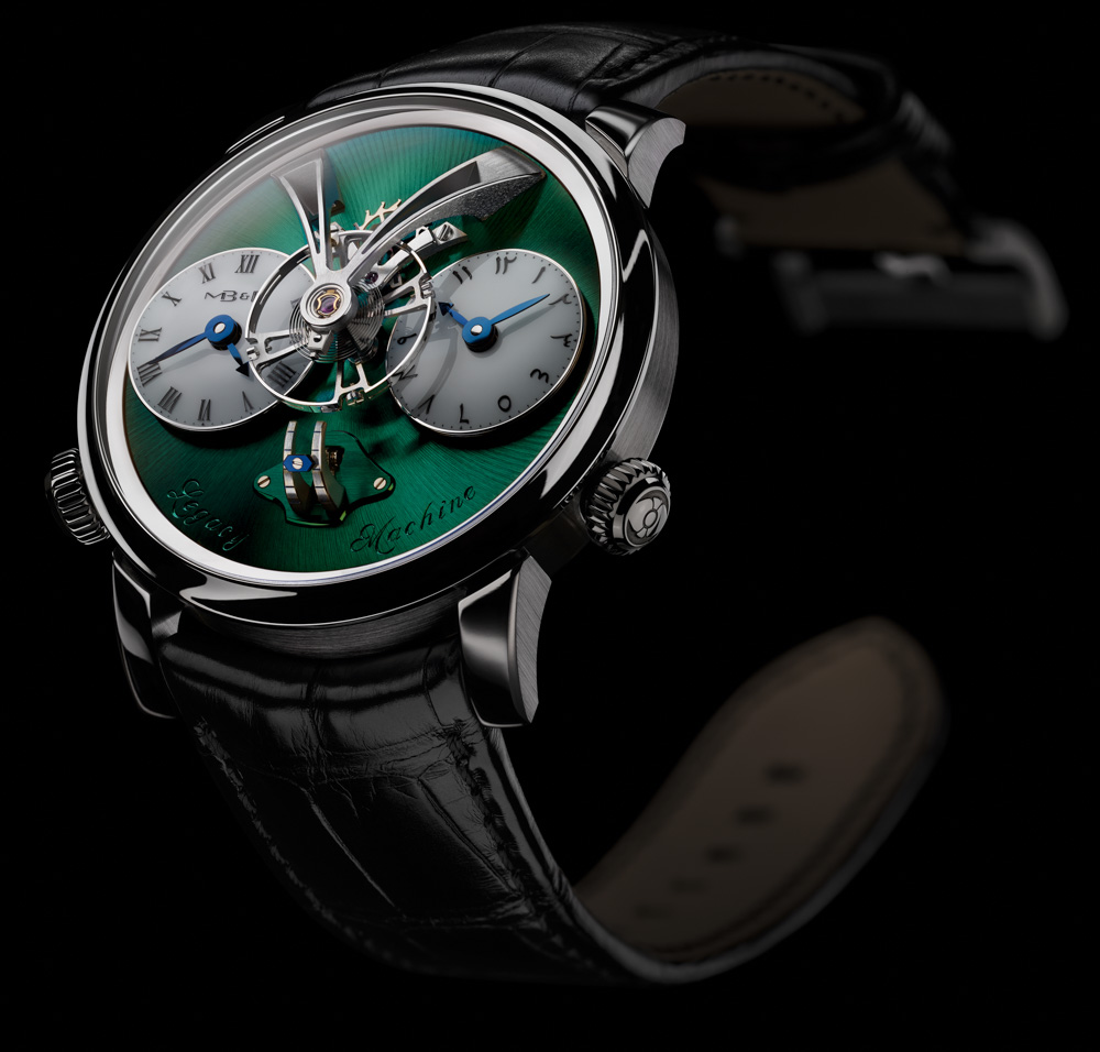 MB&F Legacy Machine 1 的 44 毫米寬和醒目的傳統圓形表殼,當然仍然是該品牌的“保守手表”。MB&F 首次決定生產一款鈦金屬,之前只有黃金或鉑金可供選擇。同樣新的是一個整潔的綠色表盤,它是使用“CVD”(化學氣相沉積)生產的,聽起來像是 PVD(物理氣相沉積)的近親。廣告留言廣告信息結束
