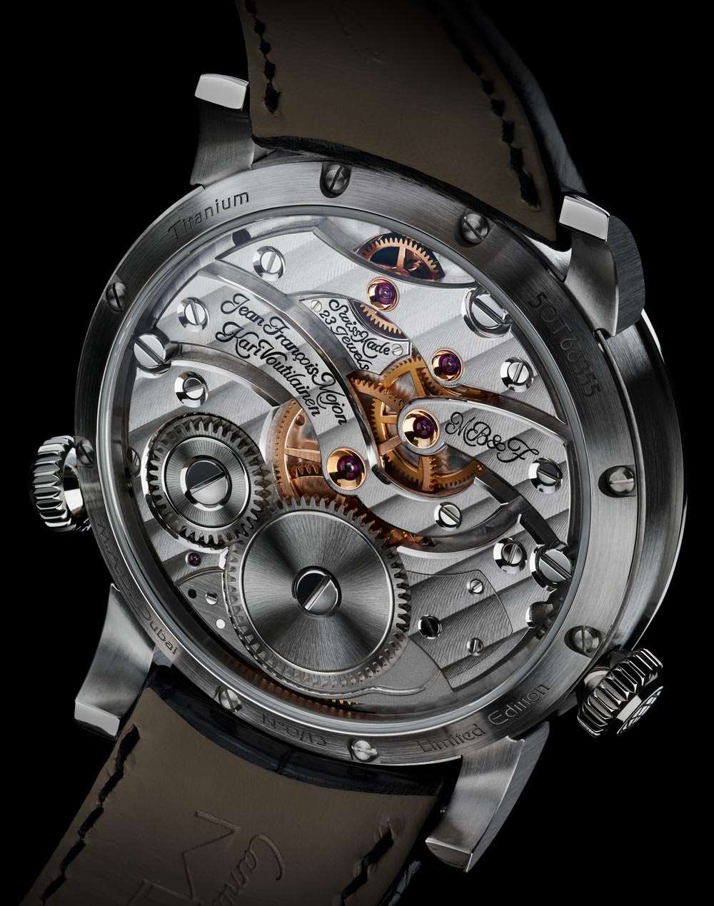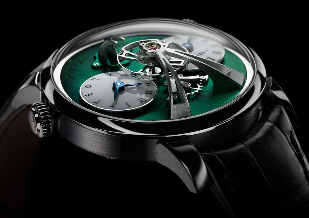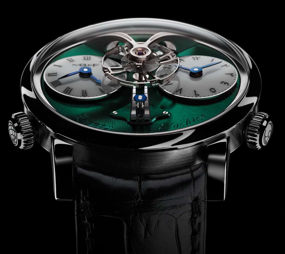 另一個獨特的設計特點——顯然是為了吸引迪拜本地市場——使用阿拉伯-印地語數字作為右側子表盤上的標記。如您所見,MB&F Legacy Machine 1 腕表有兩個時間表盤,每個表盤都可以單獨設置分鐘。由 Jean-Francois Mojon 設計并由 Kari Voutilainen 的工作室完成,MB&F LM1 內部的機芯仍然是現代機械機芯的絕對美感和巔峰之作,并帶有優雅的復古氣息。