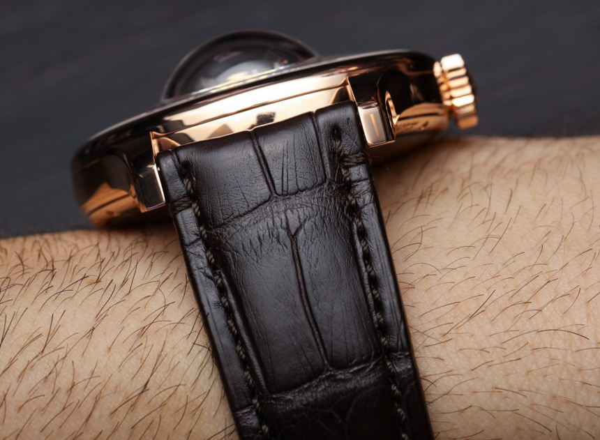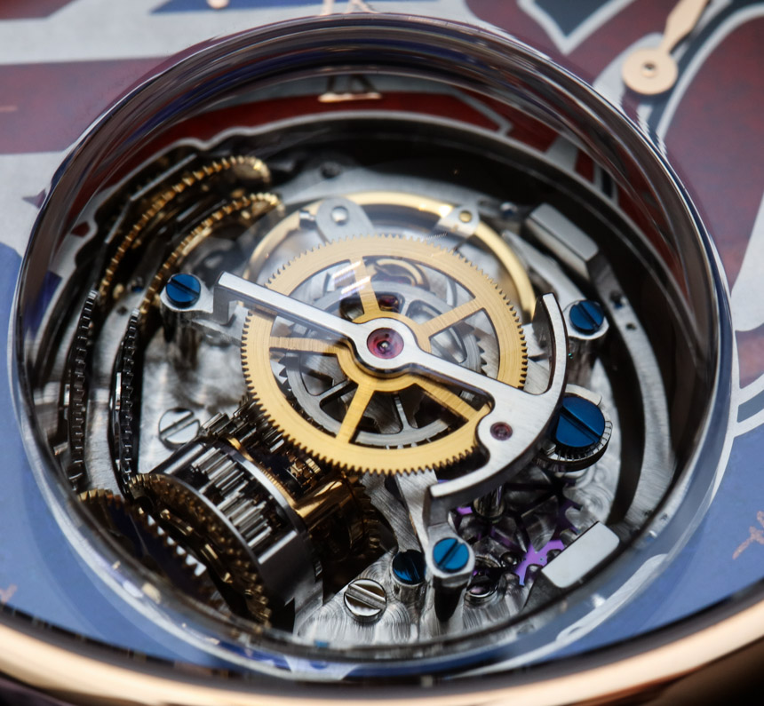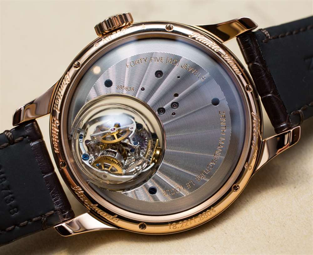 18k 玫瑰金表殼寬 45 毫米,表殼厚 14.35 毫米,但在安裝“零重力”調(diào)節(jié)系統(tǒng)的藍(lán)寶石水晶“氣泡”處厚度達(dá)到 21.4 毫米。這個(gè)概念很有趣,玩起來很有趣。你擁有的是一個(gè)高度復(fù)雜的球形調(diào)節(jié)系統(tǒng),由設(shè)計(jì)在萬向架上的擺輪和擒縱機(jī)構(gòu)組成。從底部開始加重,其理念是無論您將手表朝哪個(gè)方向移動,調(diào)節(jié)機(jī)構(gòu)都保持直立。從理論上講,這是為了提高準(zhǔn)確性。戴上手表,轉(zhuǎn)動手腕,玩起來也很有趣……廣告留言廣告信息結(jié)束