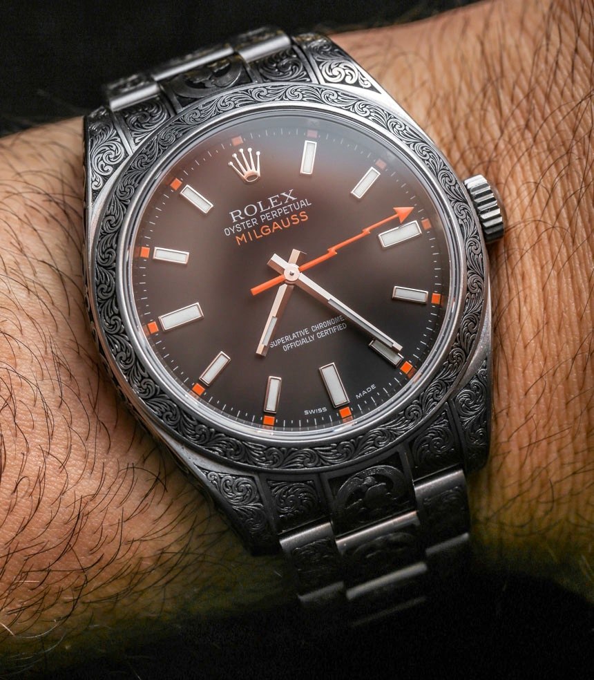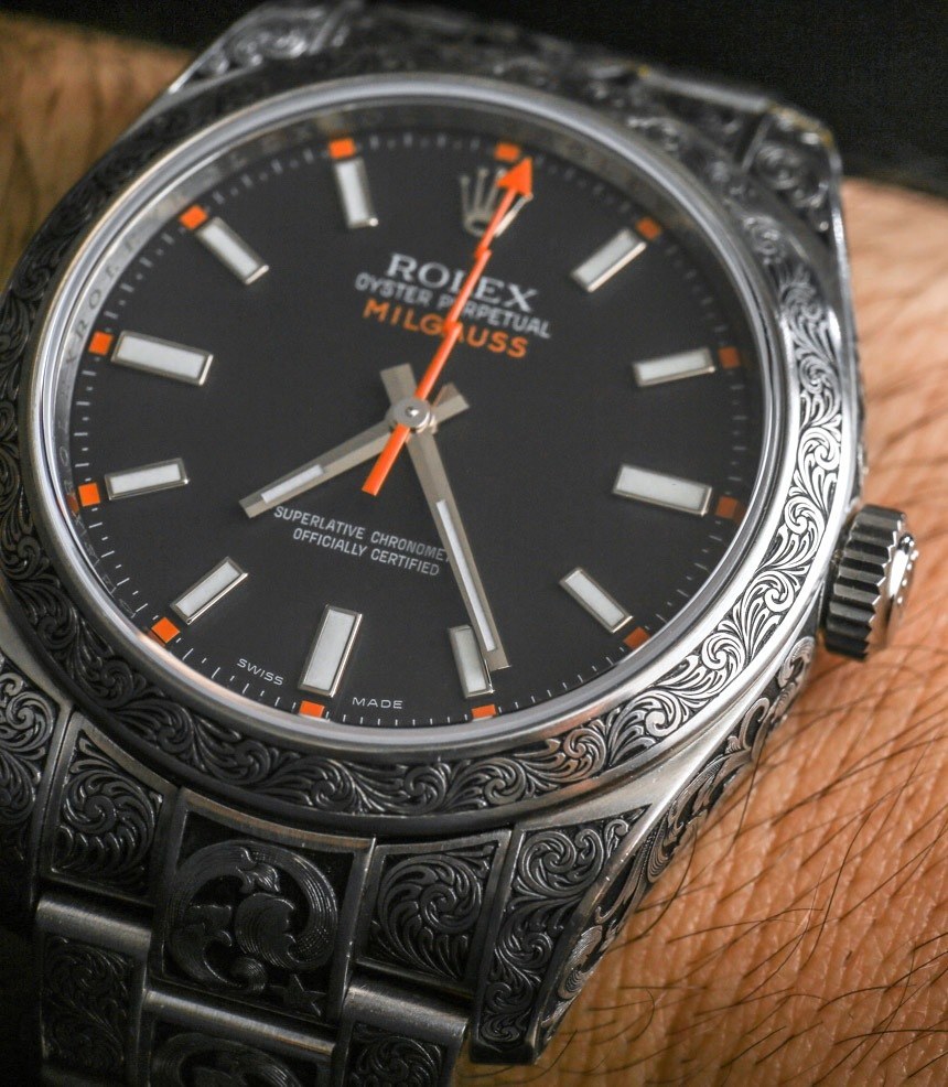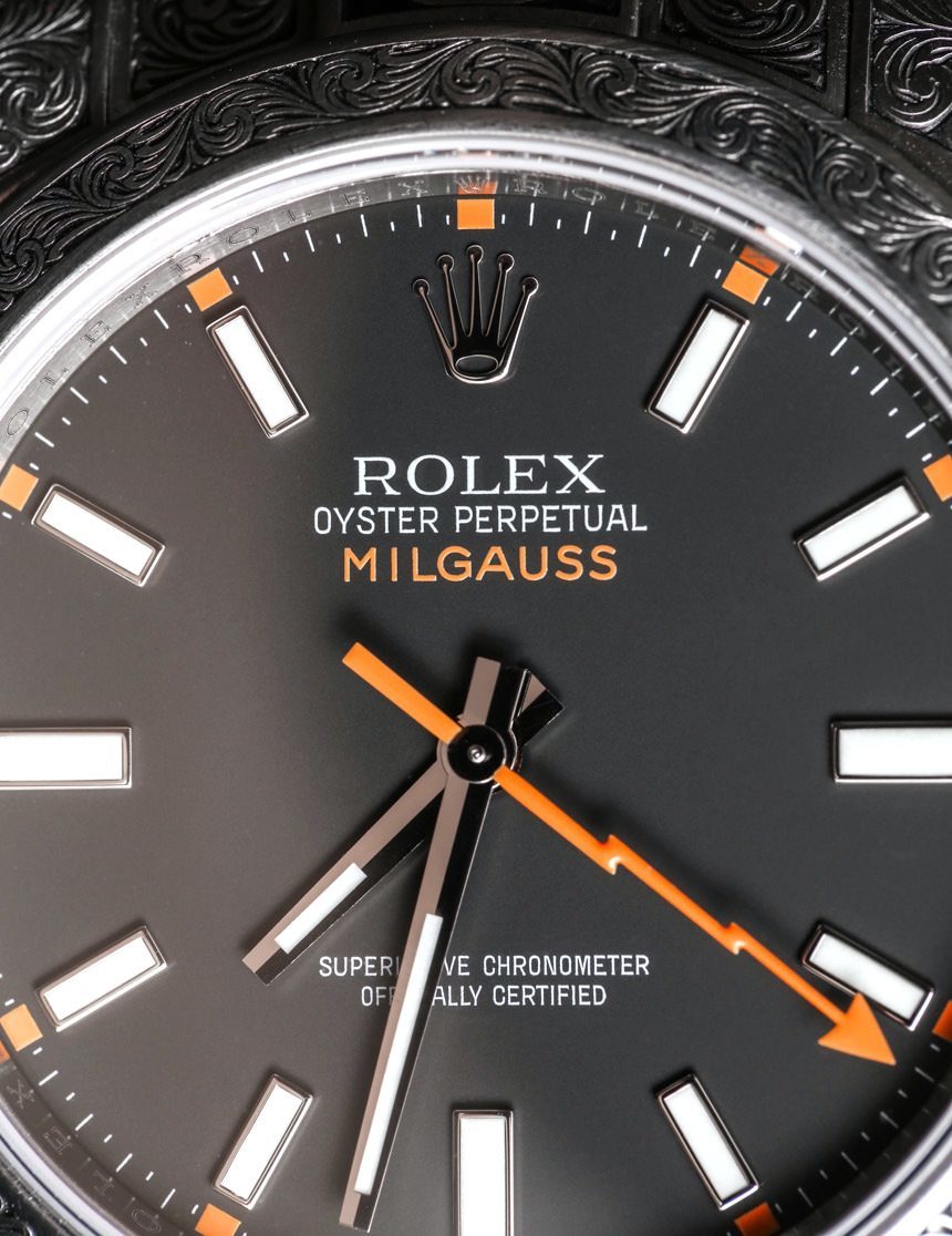 真正讓我覺得這款雕刻的勞力士 Milgauss 116400 手表的一件事是,它是一款非常漂亮的手表。例如,如果手表的其余部分與雕刻的主題相同,這將是一款完全不同的手表。我并不是說它會更好或更壞,但它會完全不同。我也喜歡這是一款現代勞力士 Milgauss 而不是復古款 – 所以你可以將看起來很新的東西與更具復古感的東西結合起來。