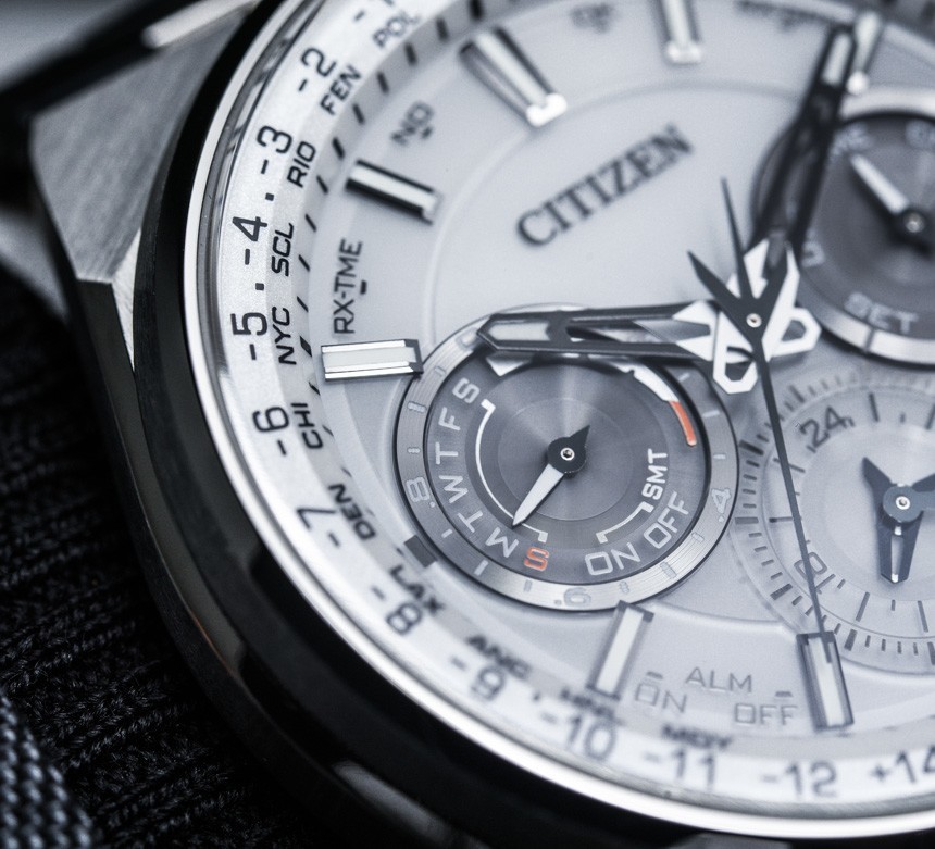 因此,隨著 F900 的新增功能,我確實覺得西鐵城終于做出了 Eco-Drive Satellite Wave 系列所需的“完美”旅行表。更重要的是,我發現 F900 的三個子表盤布局在視覺上比 F100 更平衡,盡管它不那么干凈。它還使 Satellite Wave F900 手表從表殼到表盤看起來更像是一款“科技一代”產品。