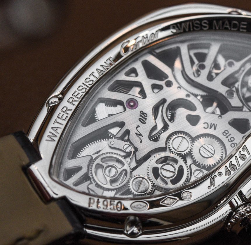 鏤空機芯頂部有一個鏤空表面,上面刻有羅馬數字時標。數字的邊緣經過手工倒角,打造高端外觀。鑒于這種精加工程度,卡地亞將 Crash Skeleton 等手表歸入其更負盛名的“高級制表”產品類別。
