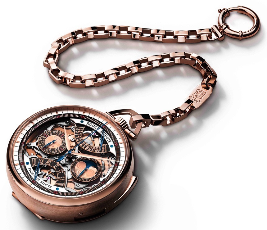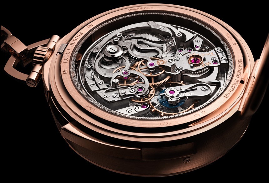 事實上,在我看來,懷表在表殼中和“展示”中看起來比手表好得多。Roger Dubuis Hommage Millesime 有一個 60 毫米寬的 18k 玫瑰金表殼,厚度為 22 毫米(并在鉸鏈式底蓋上有 Roger Dubuis 先生的簽名)。實際上,我認為對于右手腕,有人可以將 Roger Dubuis Hommage Millesime 當作腕表使用——至少我們知道它足夠準確。
