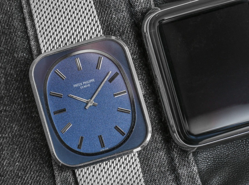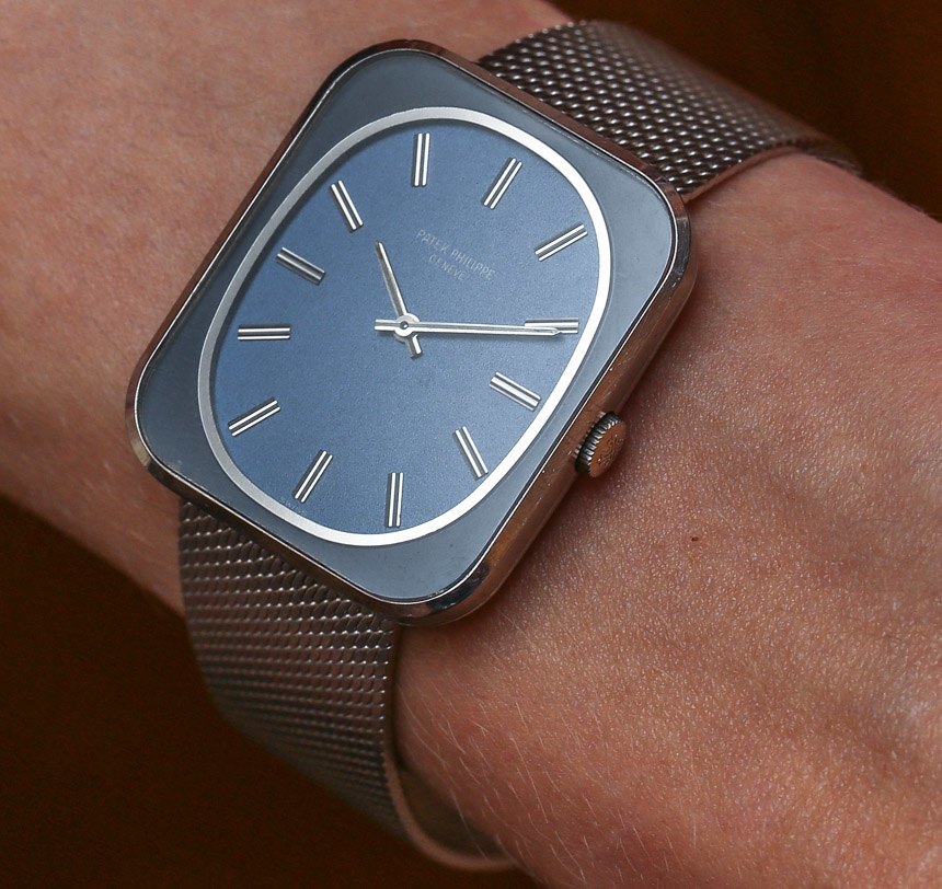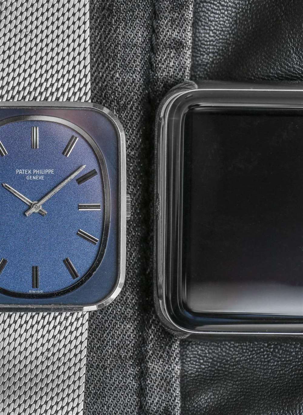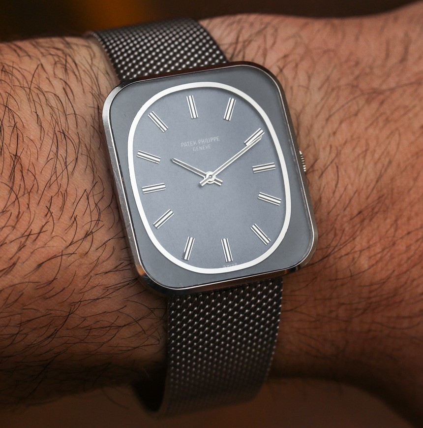 有點(diǎn)遺憾的是,我沒有將帶米蘭手鏈的 Apple Watch 放在百達(dá)翡麗 3582 旁邊,但當(dāng)然那個(gè)型號(hào)是最接近的模擬,我覺得最有趣的來源諷刺。相反,我向您提交了帶有鋼制“Link Bracelet”的 Apple Watch,以及 18k 白金 Patek Philippe Ellipse 3582G 的閃亮示例,并附有網(wǎng)狀金屬 18k 白金手鏈。