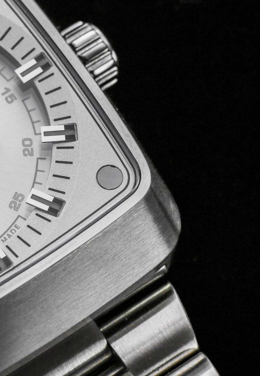 為了創造表盤效果,手表的表面略微向下,外表盤位于凸起的平面上。盡管表殼的形狀更有棱角,但表盤是圓形的。表盤的設計也是對稱的,日期窗口位于 6 點鐘位置的小時指示器上方。憑借易讀性和一些受歡迎的復古運動風格,我必須給 Zodiac Astrographic 的表盤打高分,因為它非常成功地實現了它的目標。如果您想要更獨特的東西,還有其他風格的表盤顏色,例如灰色以及 Astrographic ref 可愛的藍色和紅色。ZO6603。