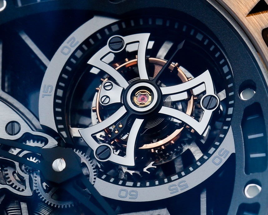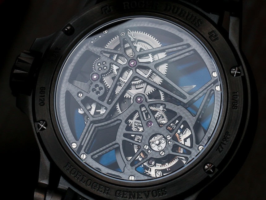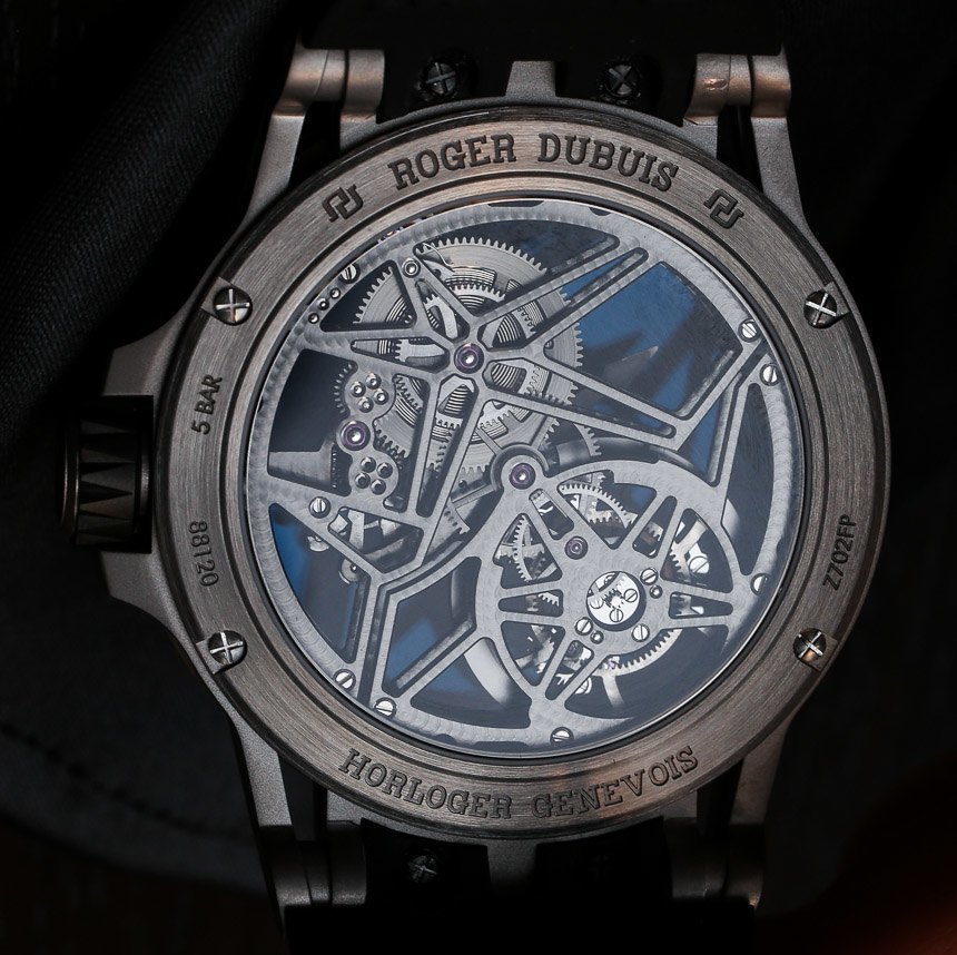 羅杰杜彼似乎并不總是知道如何根據他們用來描述陀飛輪手表的語言來推銷他們的陀飛輪手表。根據 Roger Dubuis 的說法,2015 年是“Astral Tourbillon”之年,盡管他們從未真正詳細說明那是什么。我相信它指的是主發條盒上方的橋形成的五角星。羅杰杜彼 (Roger Dubuis) 還添加了“蜘蛛”作為他們手表的名稱,因為他們覺得他們的鏤空機芯設計看起來有點像蜘蛛網……和星星。這些只是為了最好地解釋在我看來難以解釋的產品而使用的詞語。