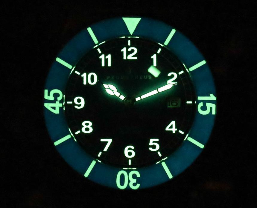 從設(shè)計(jì)的角度來(lái)看,Sailfish 的表盤是一種介于船上甲板時(shí)鐘和潛水表之間的混合物。這種組合很有趣,而且易讀性很強(qiáng),但它缺少了有時(shí)從工具表中獲得的性感。話雖如此,表盤并沒(méi)有真正打破規(guī)則,因?yàn)樗闹羔槾笮『线m,發(fā)光量也很大。正如您在上面的發(fā)光照片中看到的那樣,Prometheus Sailfish 表盤令人印象深刻。廣告留言廣告信息結(jié)束