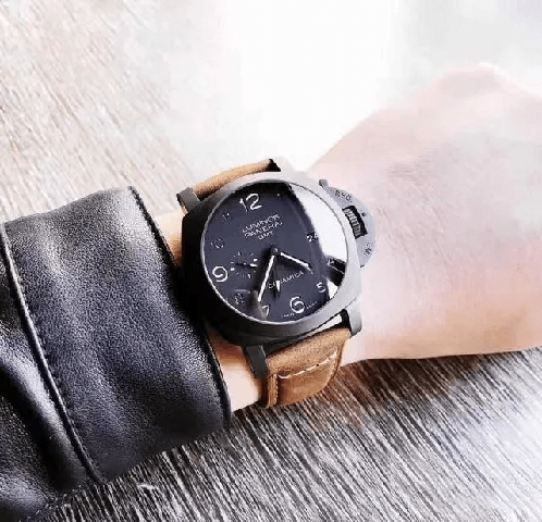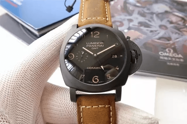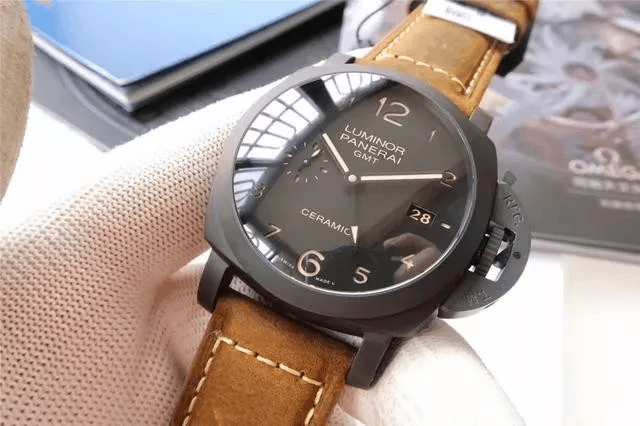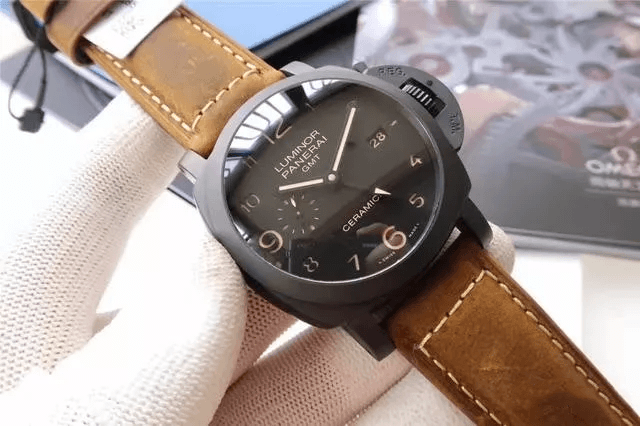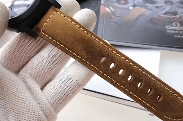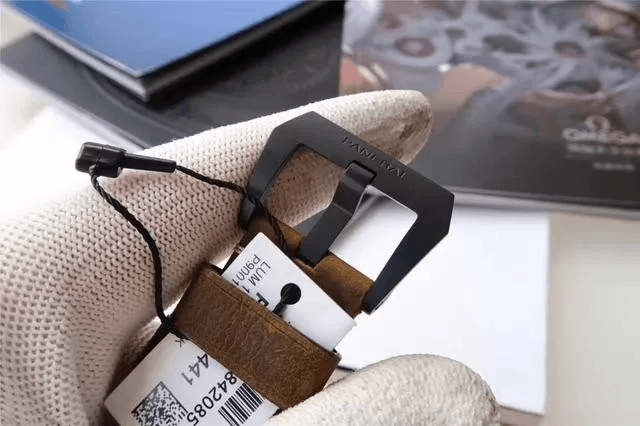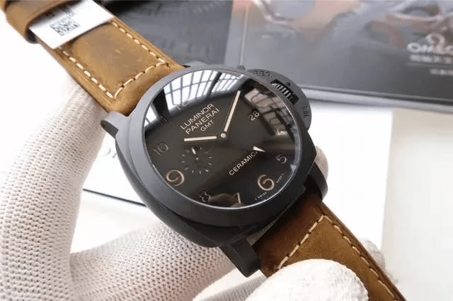 首先按照慣例還是先普及一下參數,以免部分表友還不了解,PAM00441是沛納?,F代系列,圓形的表殼直徑為44毫米,大號表盤也是沛納海的一貫風格。表殼和表盤的顏色都為黑色,加上陶瓷的材質,可以完美的將沛納海外形的氣質表現出來。表冠為精鋼和磨砂精鋼的材質,并且有沛納海標志性表橋的保護,在結構上讓腕表更加穩固的同時也讓腕表更加的穩重,給人一種沉穩可靠的感覺。表鏡為藍寶石水晶的材質,透過表鏡可以看見獨具沛納海特色的阿拉伯數字時標以及12點鐘方向顯眼的品牌LOGO,日期顯示窗和小秒針表盤對稱的分布在3點和9點鐘位置,增加了表盤的內容,為我們呈現出了對稱美感。這款表還應用了背透的設計,雖然機芯沒有什么閃亮的金屬光澤,但是在陶瓷表殼的包圍之下也散發出了硬朗的氣息。再加上配有大號鈦金屬表扣的牛皮表帶,符合沛納海慣的休閑風格。