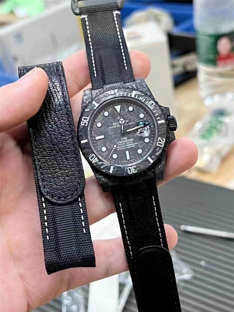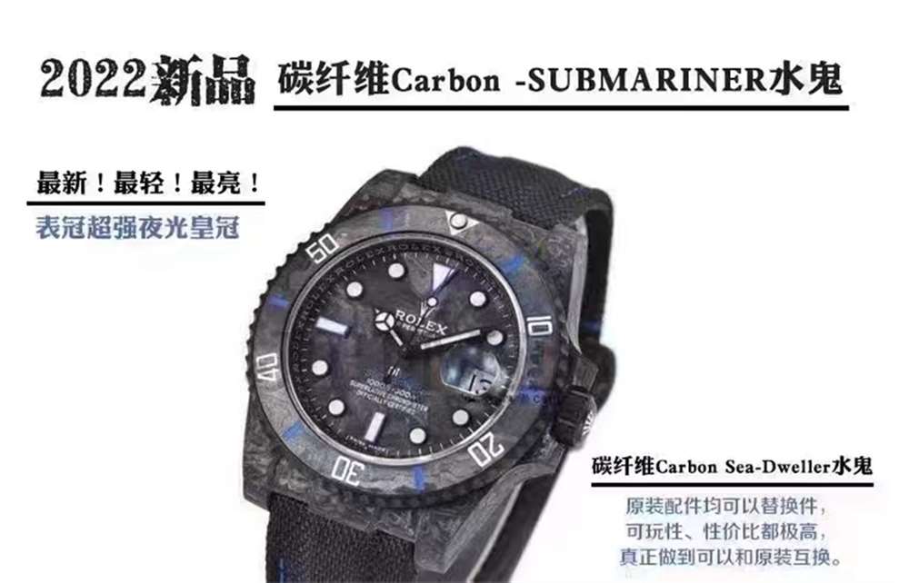 VS廠開款的DIW碳纖維水鬼,手表是碳纖維材料。碳釬焊材料是一種新的應用材料,顏色是永不過時的黑色,整體紋理非常優(yōu)雅,紋理多變,就像“世界上沒有完全相同的葉子”由于切割方式不同,每一塊碳纖維腕表都會表現(xiàn)出不同的紋理,成為獨一無二的存在。