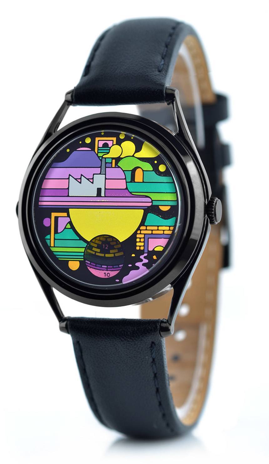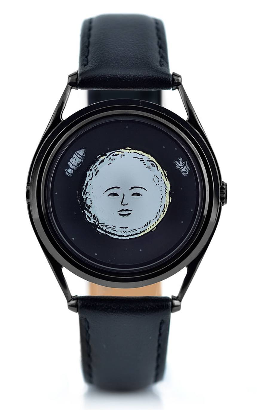 Mr. Jones Watches 與大多數本地藝術家合作制作 Face Timers 手表。第一款手表名為“Moonhead”,由藝術家兼作家 Andrew Rae 設計,基于他的書Moonhead 和音樂機器中的 Joey Moonhead 角色。考慮到優雅和友好的主題,這可能是我最喜歡的 Mr. Jones Face Timers 手表。在這里,時間通過一個小太空艙作為時針指示,宇航員作為分針指示。一個有趣的小細節是,月亮角色的眼睛是分鐘指示盤的一部分,旨在“跟隨”宇航員,因此月亮似乎一直在注視著他。